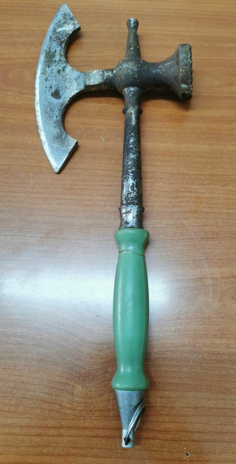 Στα πλαίσια ελέγχου συνελήφθη από αστυνομικούς της ΟΠΚΕ. Οι αστυνομικοί σταμάτησαν το ΙΧ και σε έλεγχο που πραγματοποίησαν στο όχημα, βρήκαν στον χώρο των αποσκευών το μεταλλικό τσεκούρι.