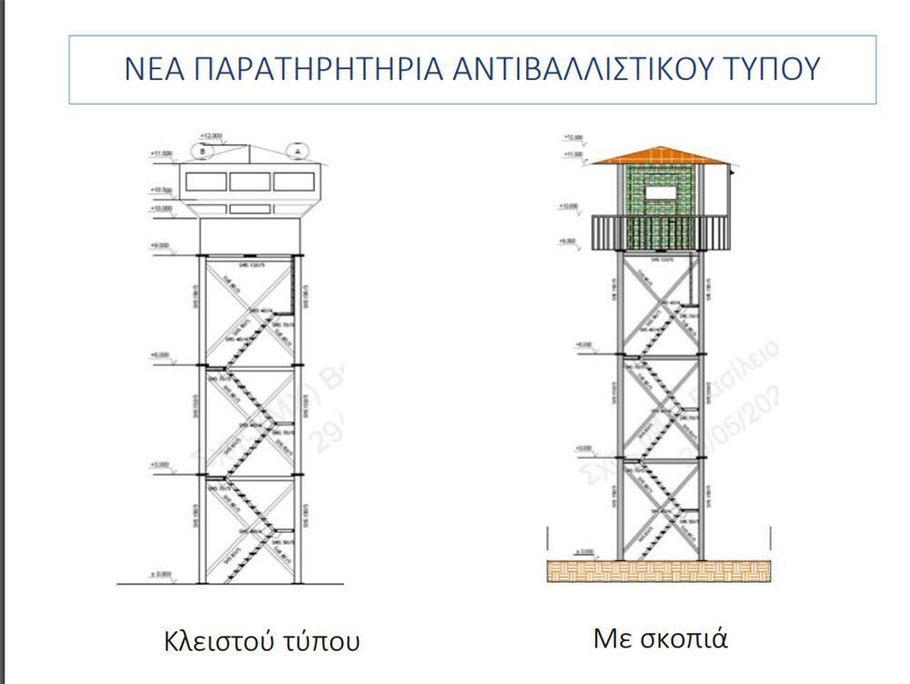 Συνδυαστικά, θα κατασκευαστούν οκτώ νέα Υπερυψωμένα Αντιβαλλιστικά Παρατηρητήρια κατά μήκος των τεχνητών εμποδίων, για χρήση από τον Ελληνικό Στρατό και θα πραγματοποιηθούν εργασίες βελτίωσης σε 57 υφιστάμενες υποδομές (φυλάκια/παρατηρητήρια), οι οποίες περιλαμβάνουν οικοδομικές και ηλεκτρομηχανολογικές εργασίες επισκευών και αναβαθμίσεων.