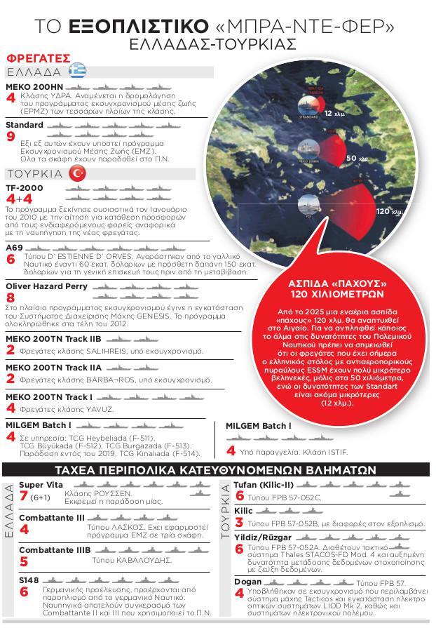 Για να αντιληφθεί κάποιος το άλμα στις δυνατότητες του Πολεμικού Ναυτικού πρέπει να σημειωθεί ότι οι φρεγάτες που έχει σήμερα ο ελληνικός στόλος έχουν 8 «κελιά» τεσσάρων βλημάτων (σύνολο 32 βλήματα) με αντιαεροπορικούς πυραύλους ESSM με πολύ μικρότερο βεληνεκές, μόλις στα 50 χιλιόμετρα, το ίδιο με τις αμερικανικές φρεγάτες MMSC, που ευτυχώς εν τέλει απέρριψε η κυβέρνηση.