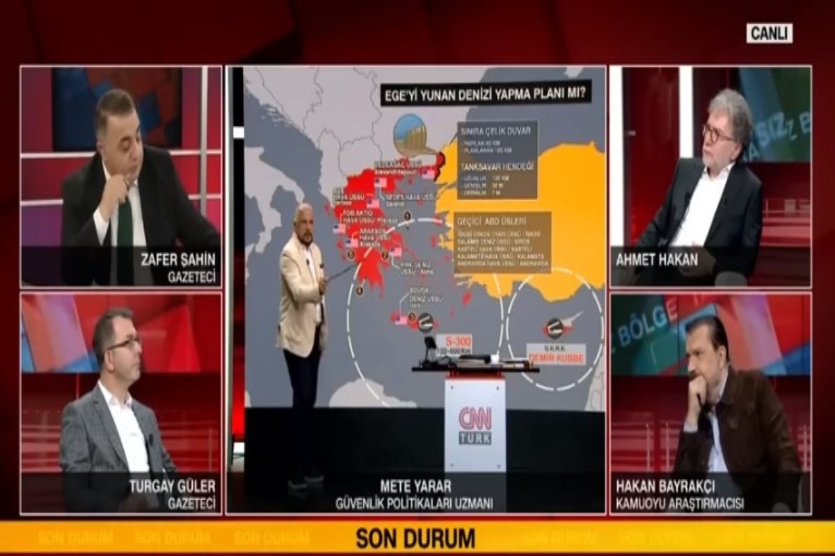 Ο τούρκος αναλυτής σε θέματα ασφαλείας Μετέ Γιαράρ (απεικονίζεται όρθιος στο κέντρο της εικόνας) εξηγεί πως η δήλωση του προέδρου της Τουρκίας Ρετζέπ Ταγίπ Ερντογάν, «Μπορεί ξαφνικά να έρθουμε ένα βράδυ», αποτελεί την έναρξη μιας διαδικασίας ίδιας με αυτήν που προηγήθηκε της εισβολής στην Κύπρο.