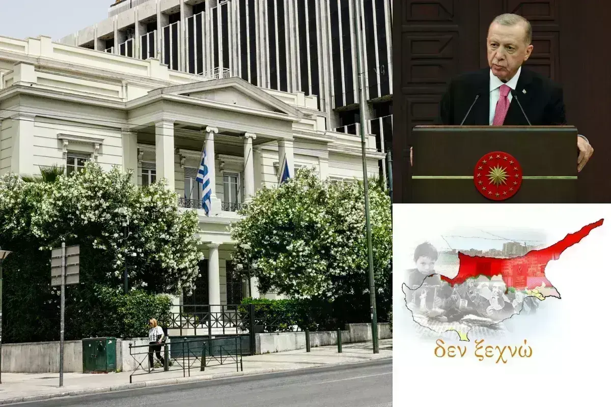 Ειδικότερα, διπλωματικές πηγές τονίζουν: «Οι δηλώσεις του Τούρκου προέδρου σχετικά με την παράνομη εισβολή στην Κύπρο το 1974 συνιστούν πρόδηλη στρέβλωση της ιστορικής αλήθειας και προσβολή στην μνήμη των θυμάτων. Πολλώ δε μάλλον όταν γίνονται σε χρόνο κατά τον οποίο βρίσκεται σε εξέλιξη προσπάθεια υπό την αιγίδα του Οργανισμού Ηνωμένων Εθνών για την επανεκκίνηση των συνομιλιών για την επίλυση του Κυπριακού στο πλαίσιο των αποφάσεων του Συμβουλίου Ασφαλείας του ΟΗΕ».