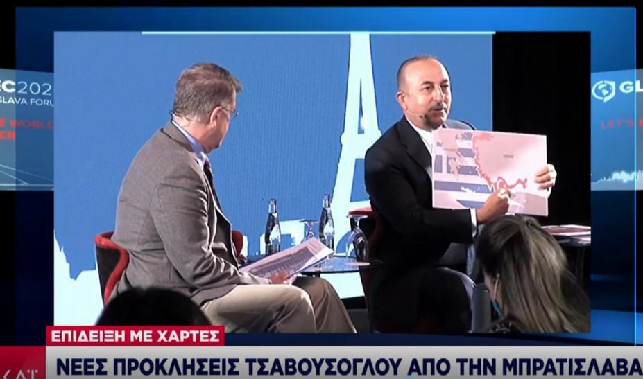 Συγκεκριμένα κατά την διάρκεια της τοποθέτησης του στο φόρουμ της Ασφάλειας ο Τσαβούσογλου έβγαλε τρείς χάρτες .