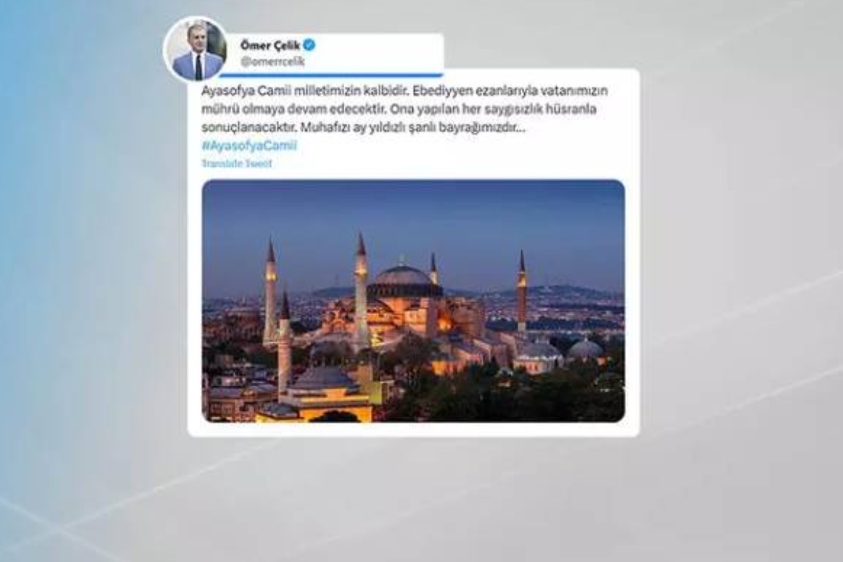 Ο Τσελίκ με μήνυμά του στα μέσα κοινωνικής δικτύωσης ανέφερε: «Το τζαμί της Αγίας Σοφίας είναι η καρδιά του λαού (…) Ο φύλακας της είναι η σημαία μας με την ημισέληνο και το αστέρι».