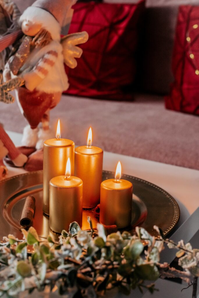Τα αρώματα και τα χρώματα είναι το μυστικό για ένα εντυπωσιακό αποτέλεσμα! Κεριά, σε διάφορες αποχρώσεις και με αρώματα βανίλιας-κανέλλας, απογειώνουν την ατμόσφαιρα! Αν αγαπάτε τη φύση, επιλέξτε φλούδες από πορτοκάλια, λεμόνια, μανταρίνια και βράστε τα στο σπίτι πριν έρθουν οι καλεσμένοι.