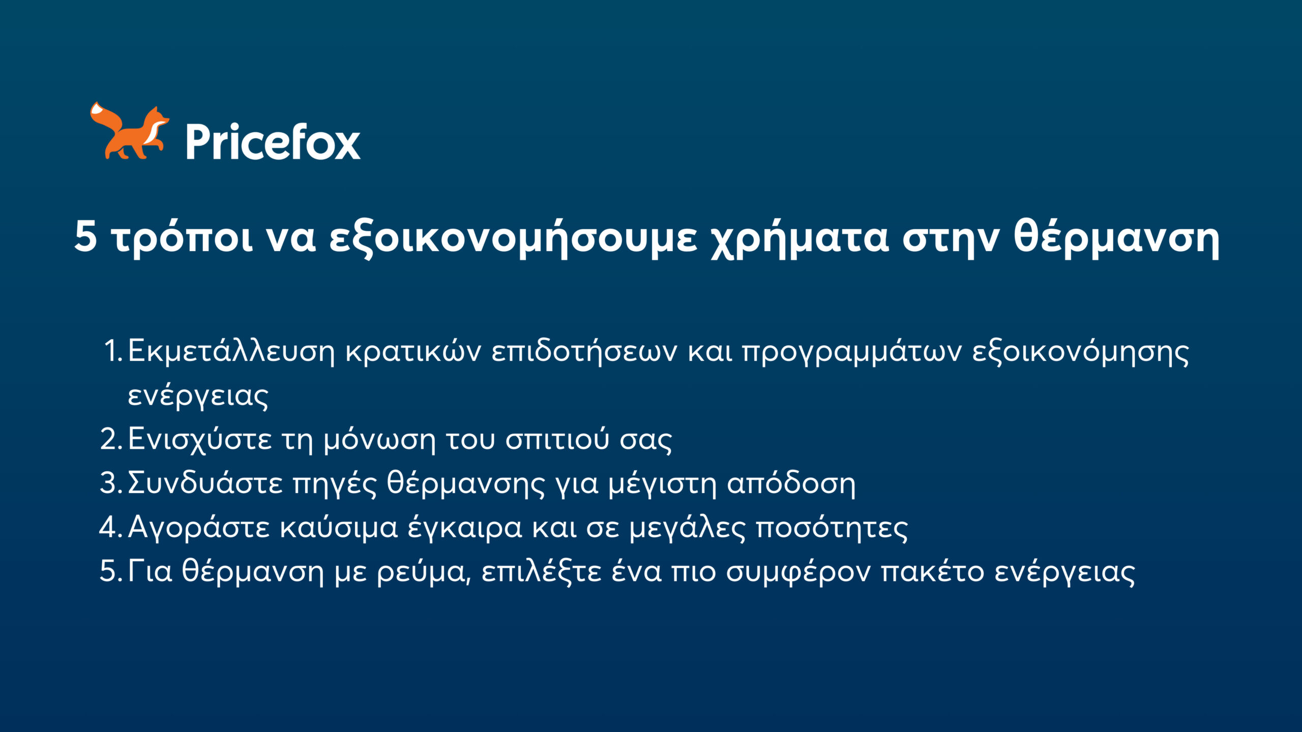 - Για θέρμανση με ρεύμα, επιλέξτε ένα πιο συμφέρον πακέτο ενέργειας