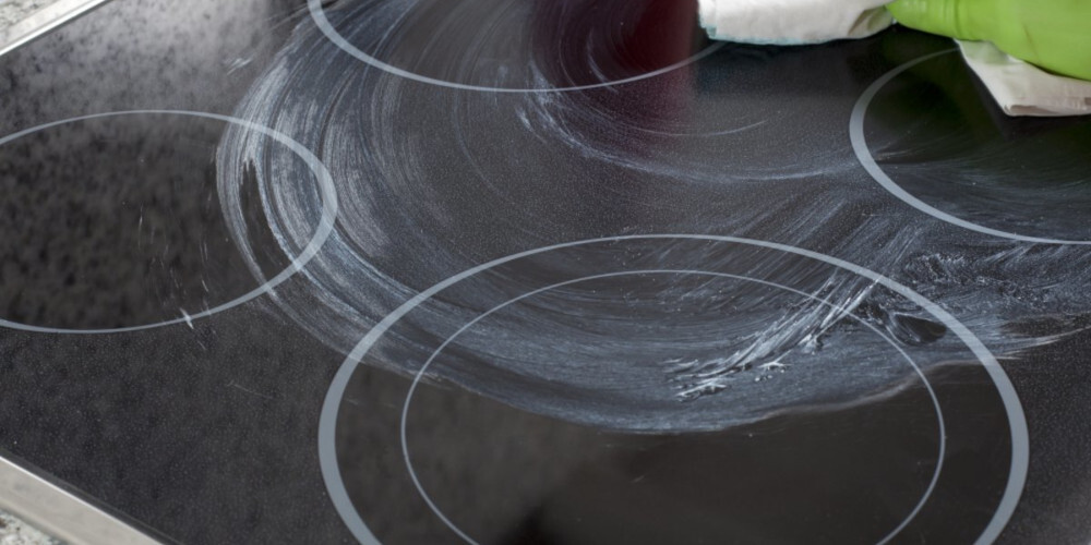 Το μόνο που θα χρειαστείτε για το καθάρισμα της κεραμικής εστίας είναι 1 φλ. μαγειρική σόδα σε σκόνη και δύο πανάκια (ένα στεγνό και ένα νωπό).