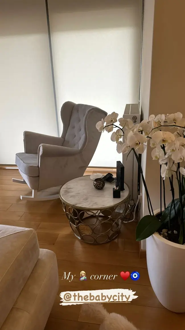 Μέσα από τον λογαριασμό της στο Instgaram, η Κωνσταντίνα Σπυροπούλου έδειξε και το μέρος του σπιτιού που έχει αγαπήσει ιδιαίτερα αφού εκεί θηλάζει.Πρόκειται για μία aesthetic γωνία, στην οποία κυριαρχεί το λευκό. Στη μέση του δωματίου υπάρχει μία άνετη πολυθρόνα θηλασμού σε κρεμ αποχρώσεις, ενώ ακριβώς δίπλα ξεχωρίσαμε ένα υπέροχο μαρμάρινο τραπεζάκι. Από τον χώρο δε λείπουν τα όμορφα λουλούδια. Η Κωνσταντίνα Σπυροπούλου έχει τοποθετήσει μία μεγάλη λευκή γλάστρα με πανέμορφες ορχιδέες.