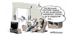 Δείτε όλες τις γελοιογραφίες από τον Γιάννη Δερμεντζόγλου.