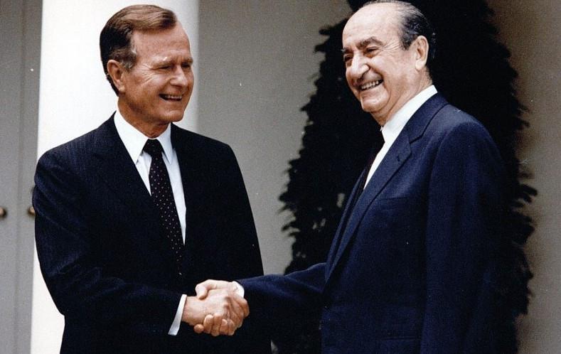Η συνάντηση των δύο ανδρών, έγινε στις 21 Μαΐου, και ο πρόεδρος Μπους ευχήθηκε «χρόνια πολλά» στον Έλληνα πρωθυπουργό για την ονομαστική του εορτή.