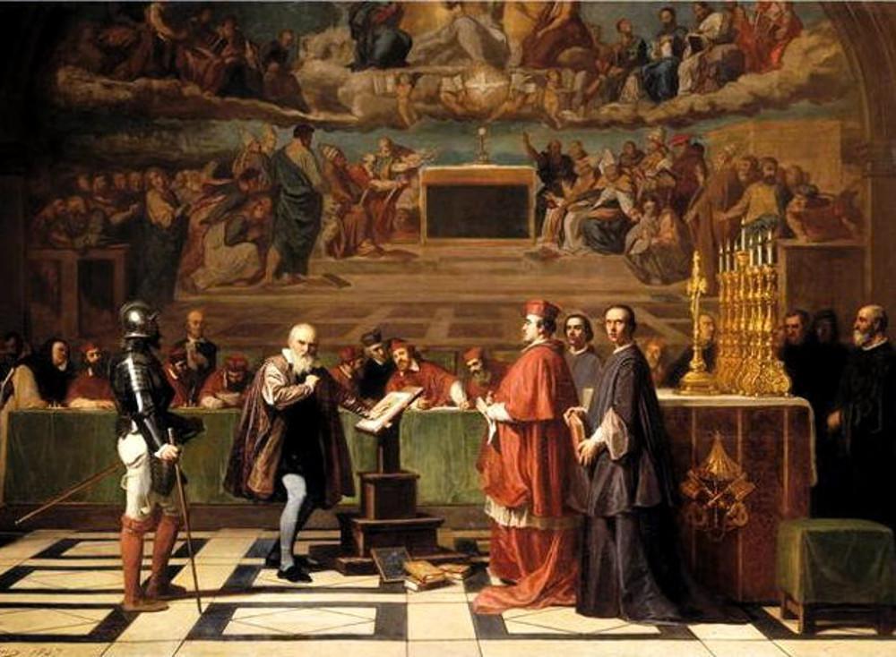 Ο Γαλιλαίος (Γκαλιλέο Γκαλιλέι) απαρνείται μπροστά στους ιεροεξεταστές τη θεωρία του ως αιρετική και λαθεμένη και δέχεται ότι η Γη είναι επίπεδη και ακίνητη. Λέγεται ότι την ίδια στιγμή σιγομουρμούρισε: «Και όμως κινείται!»