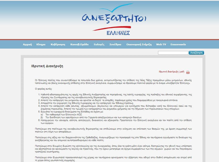 Διαβάζοντας την ιδρυτική διακήρυξη των ΑΝΕΛ βλέπουμε πως προϊδεάζουν για μία εντελώς διαφορετική διακυβέρνηση από αυτήν που ισχύει σήμερα…