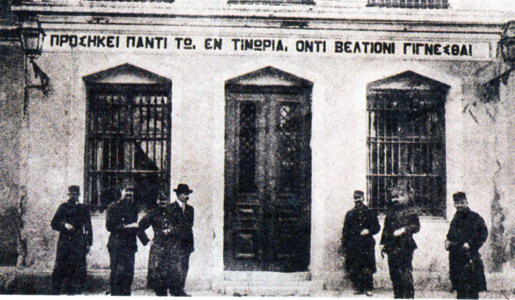 Η κεντρική πύλη των φυλακών Συγγρού με την επιγραφή «Πρέπει κάθε τιμωρημένος να γίνεται καλύτερος»…