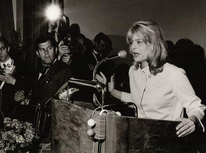 Κατά τη διάρκεια της επταετίας (1967-1974) πολέμησε σφοδρά τη Χούντα, χρησιμοποιώντας τη φήμη και τη λάμψη που είχε αποκτήσει, με συνέπεια να της αφαιρεθεί η ελληνική υπηκοότητα. Έδωσε αρκετές συναυλίες και διοργάνωσε αρκετά μεγάλο αριθμό πορειών αντιδικτατορικού χαρακτήρα. Επεδίωξε και συναντήθηκε με πολιτικούς αλλά και με πνευματικές προσωπικότητες παγκοσμίου κύρους, με σκοπό να τους ευαισθητοποίησει ενάντια στη χούντα. Κατά την διάρκεια των αγώνων της έγιναν εναντίον της απόπειρες δολοφονίας, μία από τις οποίες παραλίγο να της στερήσει τη ζωή.