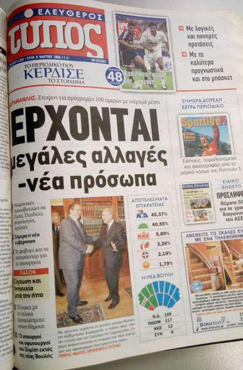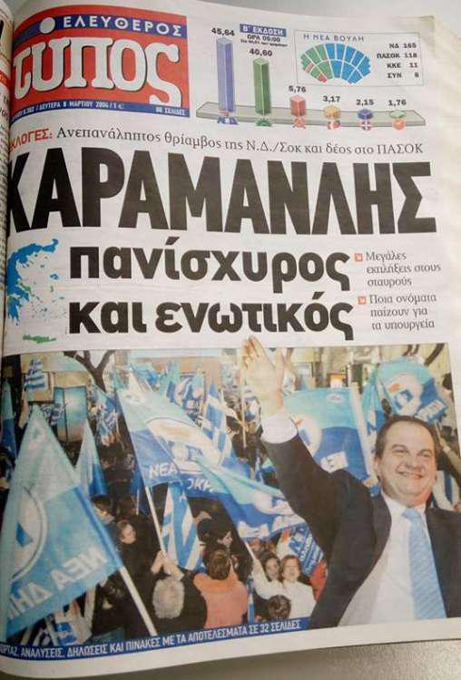 Άνθρωποι που μέχρι την στιγμή εκείνη δεν είχαν ψηφίσει ποτέ στη ζωή τους Νέα Δημοκρατία, εμπιστεύονται τον Καραμανλή, ψηφίζουν το κόμμα του στις εκλογές του Μάρτη και η κεντροδεξιά παράταξη αναλαμβάνει την διακυβέρνηση της χώρας, με το σύνθημα «επιτέλους κάθαρση».