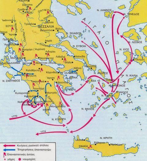 Στα τέλη του Ιουλίου 1769 άρχισε η αποστολή της πρώτης ρωσικής ναυτικής μοίρας στο Αιγαίο, με διοικητή τον ναύαρχο Γκριγκόρι Σπιρίντοφ και τον Άγγλο αξιωματικό Γκρέιγ. Χρέη τοποτηρητή του στόλου είχε ο Μυκονιάτης πλοίαρχος Αντώνιος Ψαρός.