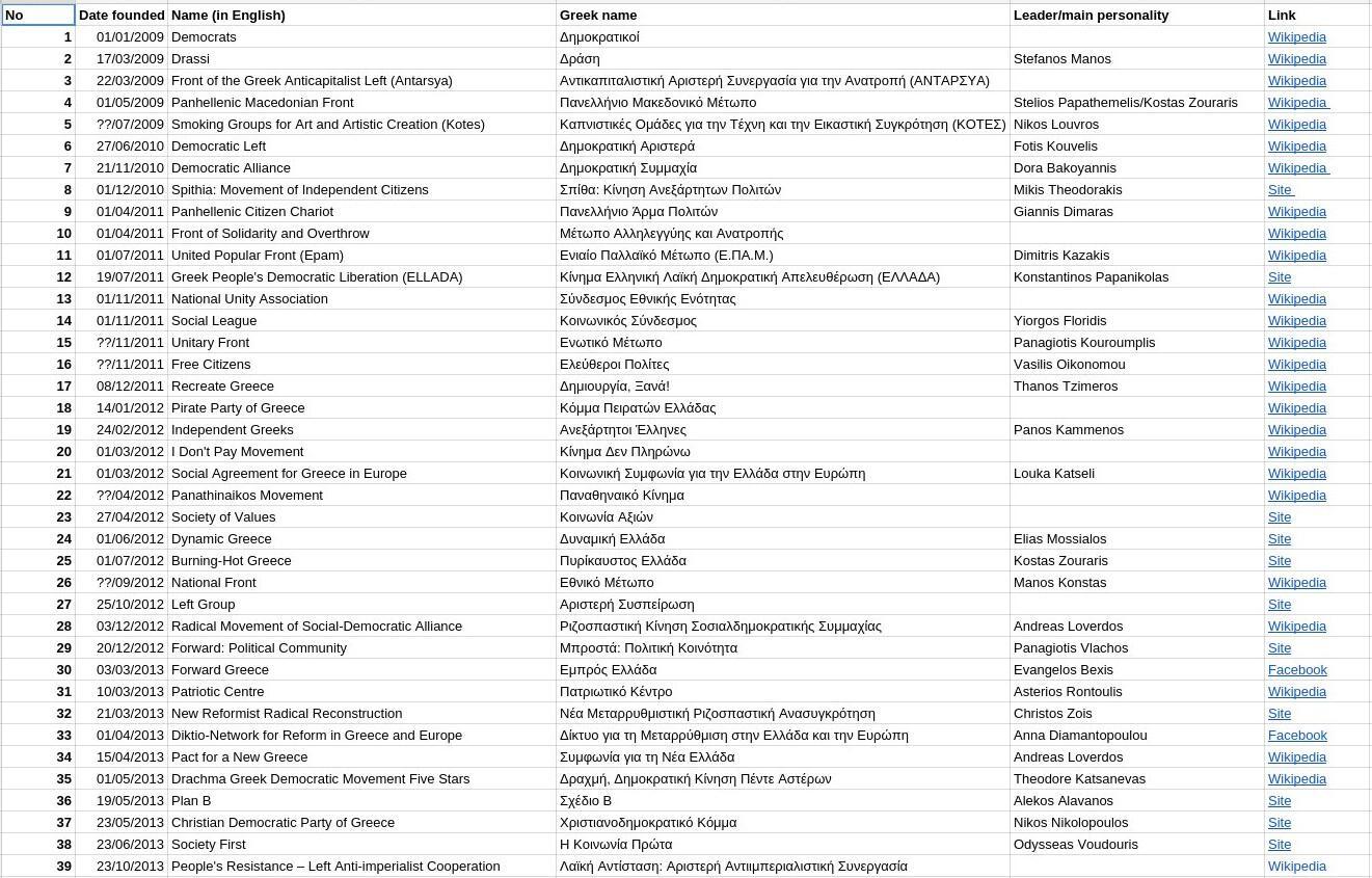 Παλαιότερα μικρά κόμματα αύξησαν τα ποσοστά τους, άλλα εξαφανίστηκαν ενώ πολλά δημιουργήθηκαν. Αυτό διαφαίνεται και από μία μία λίστα που περιλαμβάνει τα νέα πολιτικά κόμματα, τα κινήματα και τους συνασπισμούς που δημιουργήθηκαν στην Ελλάδα από το 2009 κυκλοφορεί τις τελευταίες ώρες στο Twitter.