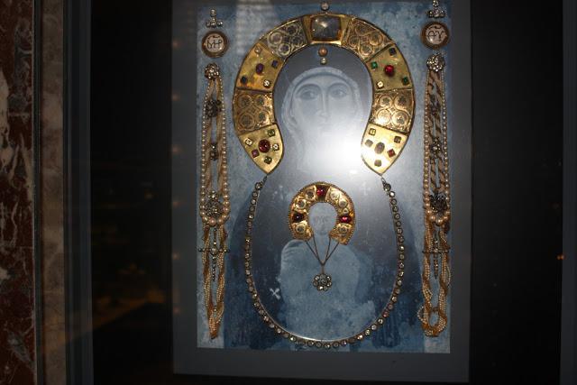 Πλέον το στέμμα χρησιμεύει ως βάση για το γλυπτό από κρύσταλλο που φέρει μπροστά του επίχρυσο ασημένιο αγαλματάκι της Θεοτόκου. Το κρύσταλλο και το αγαλματάκι είναι του 13ου αιώνα, το στέμμα τέλος 9ου αρχές 10ου αιώνα.