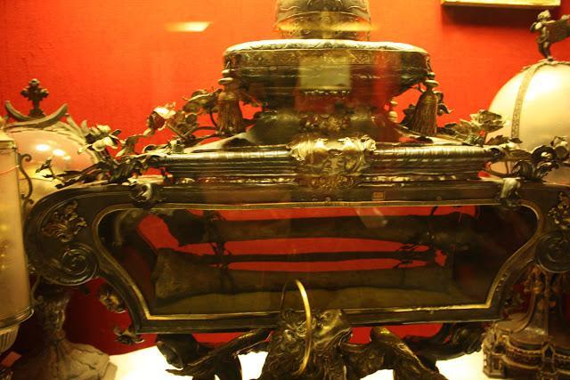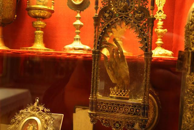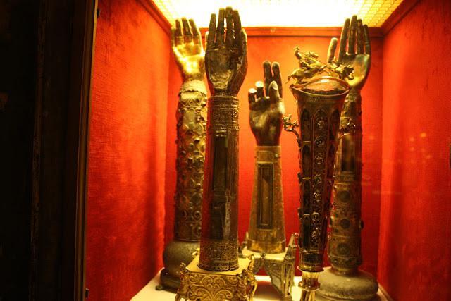 Εκατοντάδες λειψανοθήκες υπάρχουν στους χώρους του Αγίου Μάρκου. Στη φωτογραφία που ακολουθεί είναι λειψανοθήκες με «άγια χέρια». Μπροστά βρίσκεται η λειψανοθήκη με το χέρι του Αγίου Γεωργίου.