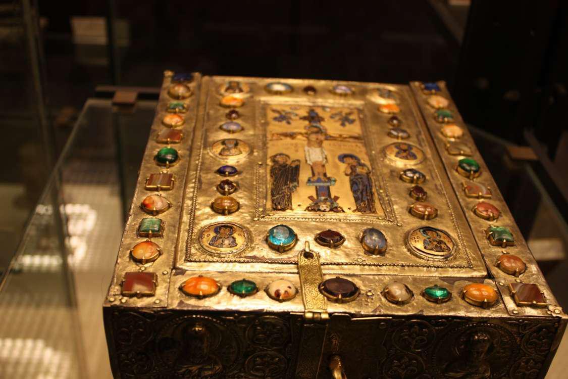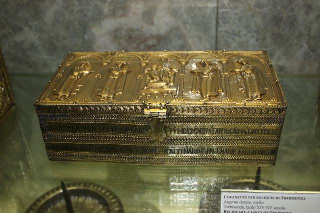 Στην παρακάτω φωτογραφία είναι λειψανοθήκη από την Τραπεζούντα των Κομνημών με την επιγραφή: