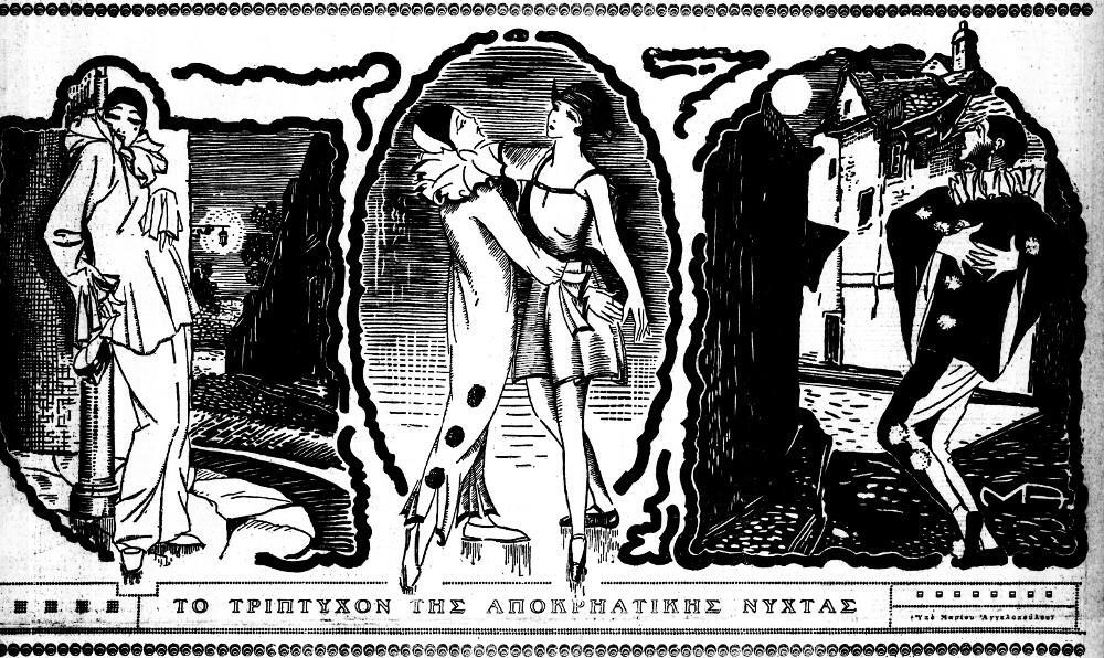 Δεν προσπαθώ να πείσω τους ομοφύλους μου ότι πρέπει να αλιεύουν συζύγους από το πλήθος των προσωπιδοφόρων των Απόκρεω. Η τοιαύτη διά δυναμίτιδος αλιεία απαγορεύεται υπό της λογικής. Προσπαθώ μάλλον ν’ αποδείξω ότι η προσωπίς είναι το ωραιότερον στόλισμα εις την γυναίκα. Την δεικνύει πάντοτε ωραίαν. Εννοείται ότι υπάρχουν εις τον κόσμον αυτόν και συμφοραί. Και υπάρχουν και προσωπίδες αι οποίαι αφού σας τρελάνουν με υποσχέσεις συγκινητικάς και γλυκυτάτας, σας δεικνύουν έπειτα την φρίκην. Αλλά πιστεύσατε ότι αυταί είναι εξαιρέσεις και ότι τοιαύτας εκπλήξεις σπανίως δοκιμάζει κανείς. Η άσχημος, όταν βεβαιωθή πλέον ότι εσχηματίσθη πεποίθησις ότι είναι ωραία, δεν βγάζει πλέον την μάσκα της και αν ακόμη πληροφορηθή ότι εξημέρωσε Καθαρά Δευτέρα. Μόνον η ωραία, αφού βασανίσει και τυραννήσει με την μάσκαν, αποκαλύπτεται διά να τυραννήση και βασανίση και δίχως μάσκαν».