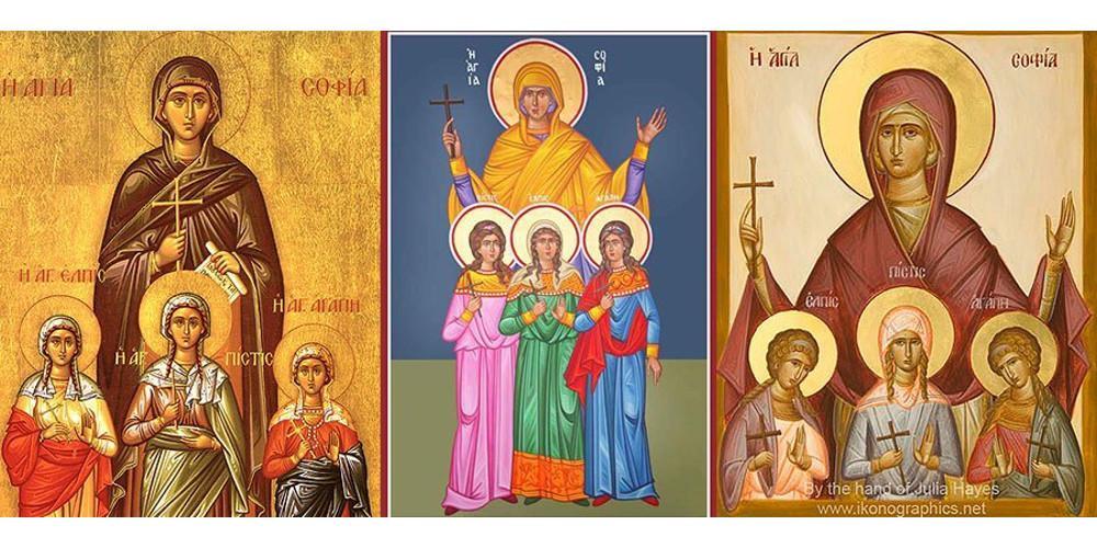 Η Αγία Σοφία καταγόταν από μια μεγάλη πόλη της Ιταλίας. Ήταν γυναίκα σεμνή και ευσεβής. Έμεινε χήρα πολύ νωρίς και εγκαταστάθηκε στη Ρώμη με τις τρεις κόρες της, την Πίστη δώδεκα ετών, την Ελπίδα δέκα και την Αγάπη εννέα ετών.