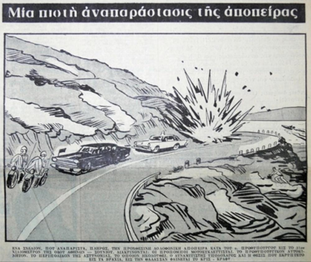 Φτάνοντας σ’ ένα γεφυράκι που σήμερα δεν υπάρχει, μια έκρηξη ταρακουνά το θωρακισμένο αυτοκίνητο (προοριζόταν για τον πρόεδρο της Γκάνα, αλλά αγοράζεται από ομάδα Ελληνοαμερικάνων και χαρίζεται στο δικτάτορα).
