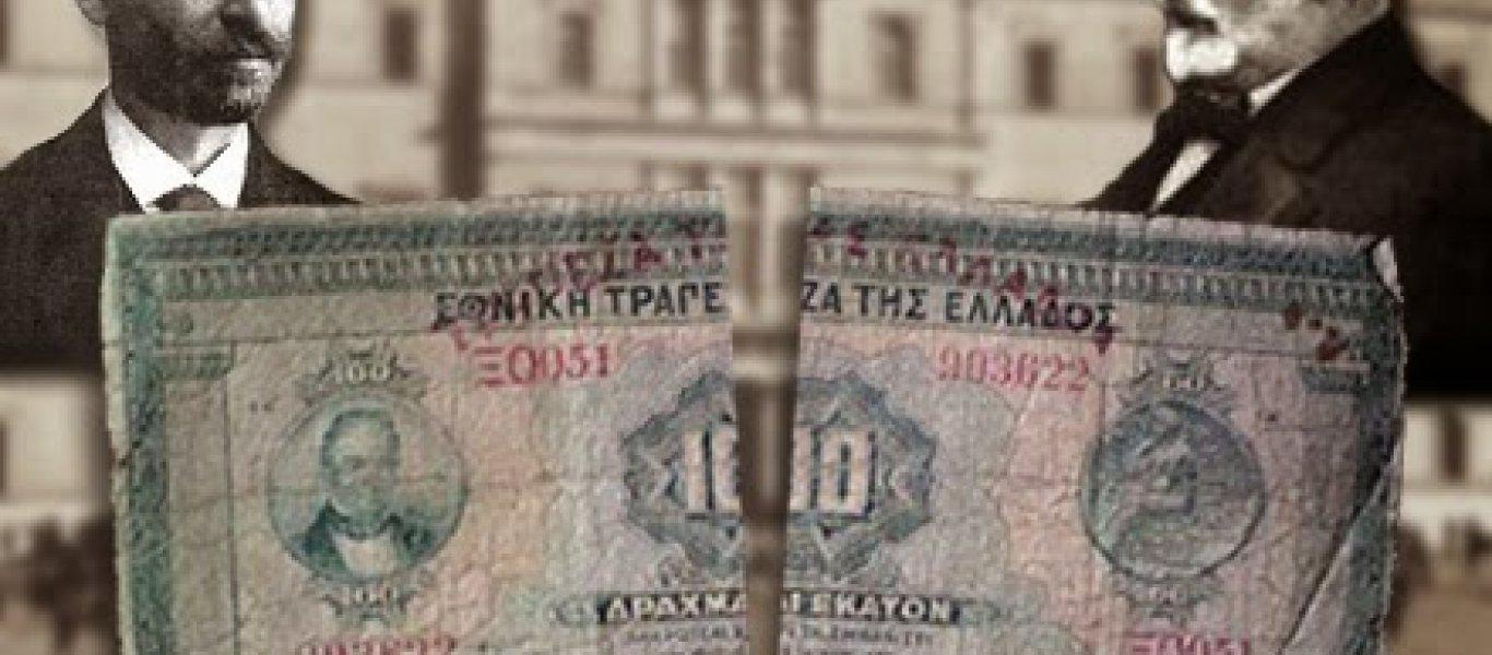 Εκείνη τη δύσκολη στιγμή και αφού η σύναψη δανείου από την Αγγλία είχε τελικά αποκλεισθεί και η χώρα ευρίσκετο σε δεινή οικονομική κατάσταση, ο υπουργός των Οικονομικών, Π. Πρωτοπαπαδάκης, ενεπνεύσθην τη διχοτόμηση του νομίσματος. Αξίζει να αναφέρουμε τι γράφει ο βιογράφος του Π. Πρωτοπαπαδάκη για την ιστορική εκείνη στιγμή.