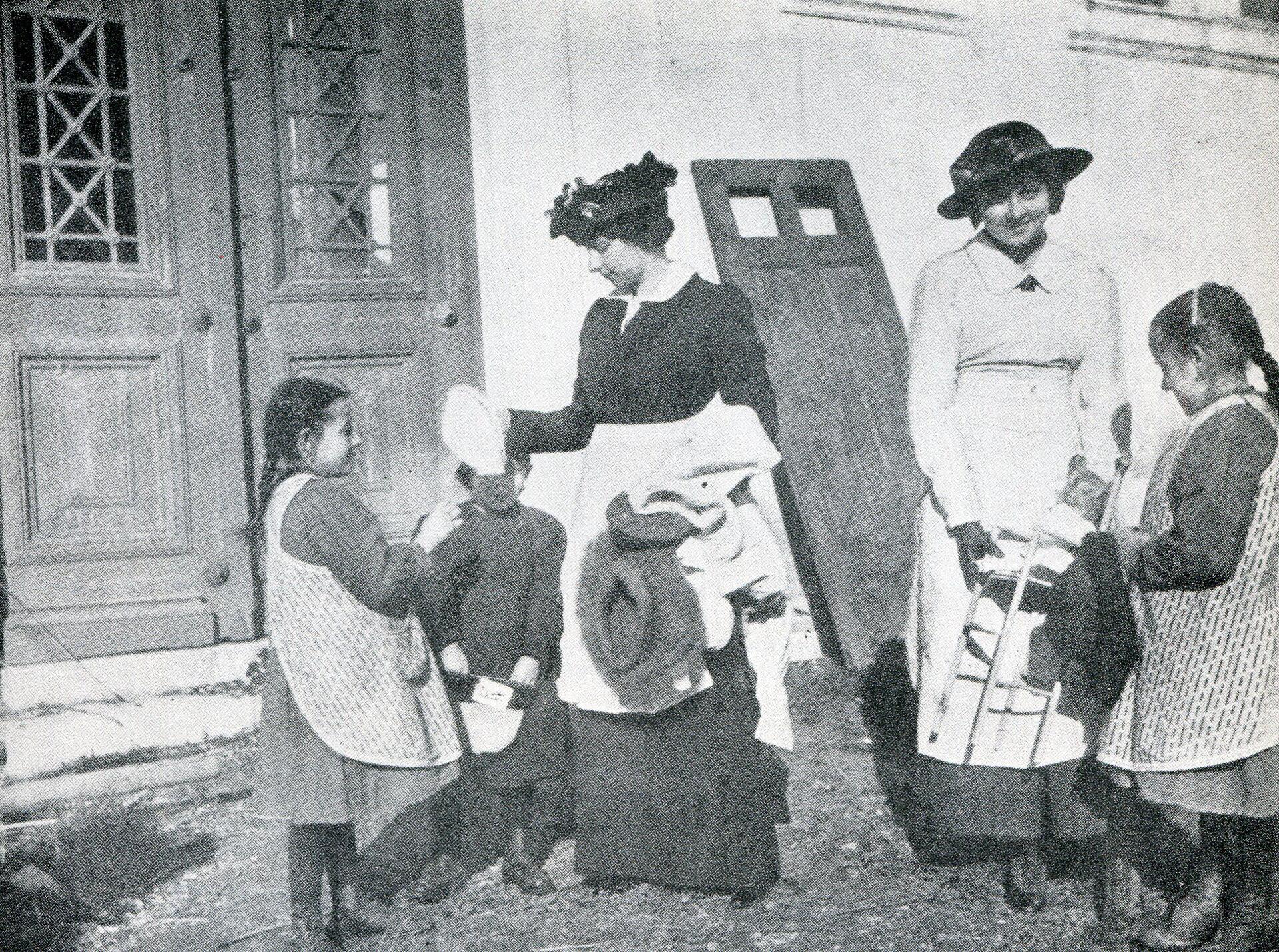 Στο πνεύμα των ημερών το μοίρασμα ρούχων και παιχνιδιών στα ορφανά των Βαλκανικών Πολέμων.