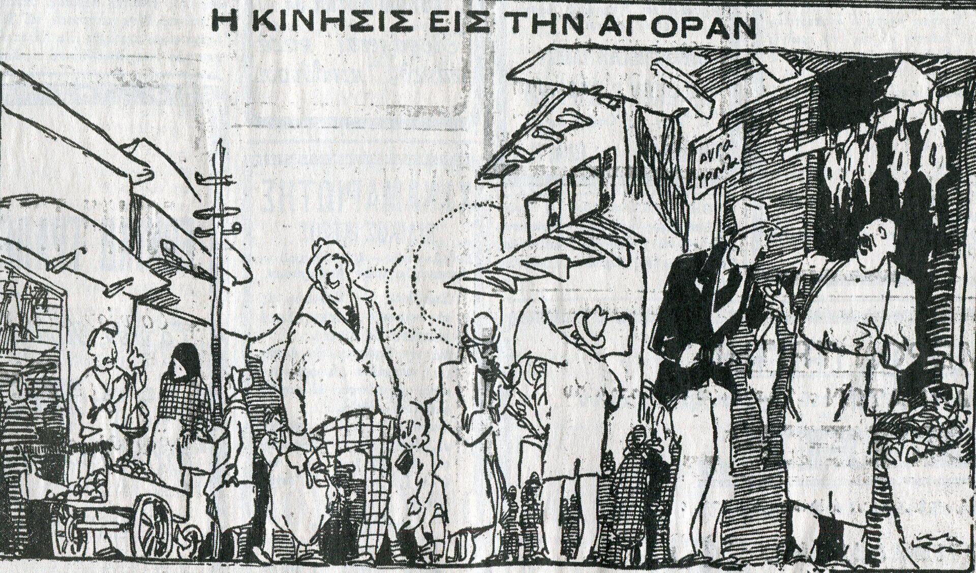 «Η κίνησις εις την αγοράν» κατά το σκιτσογράφο της εποχής.
