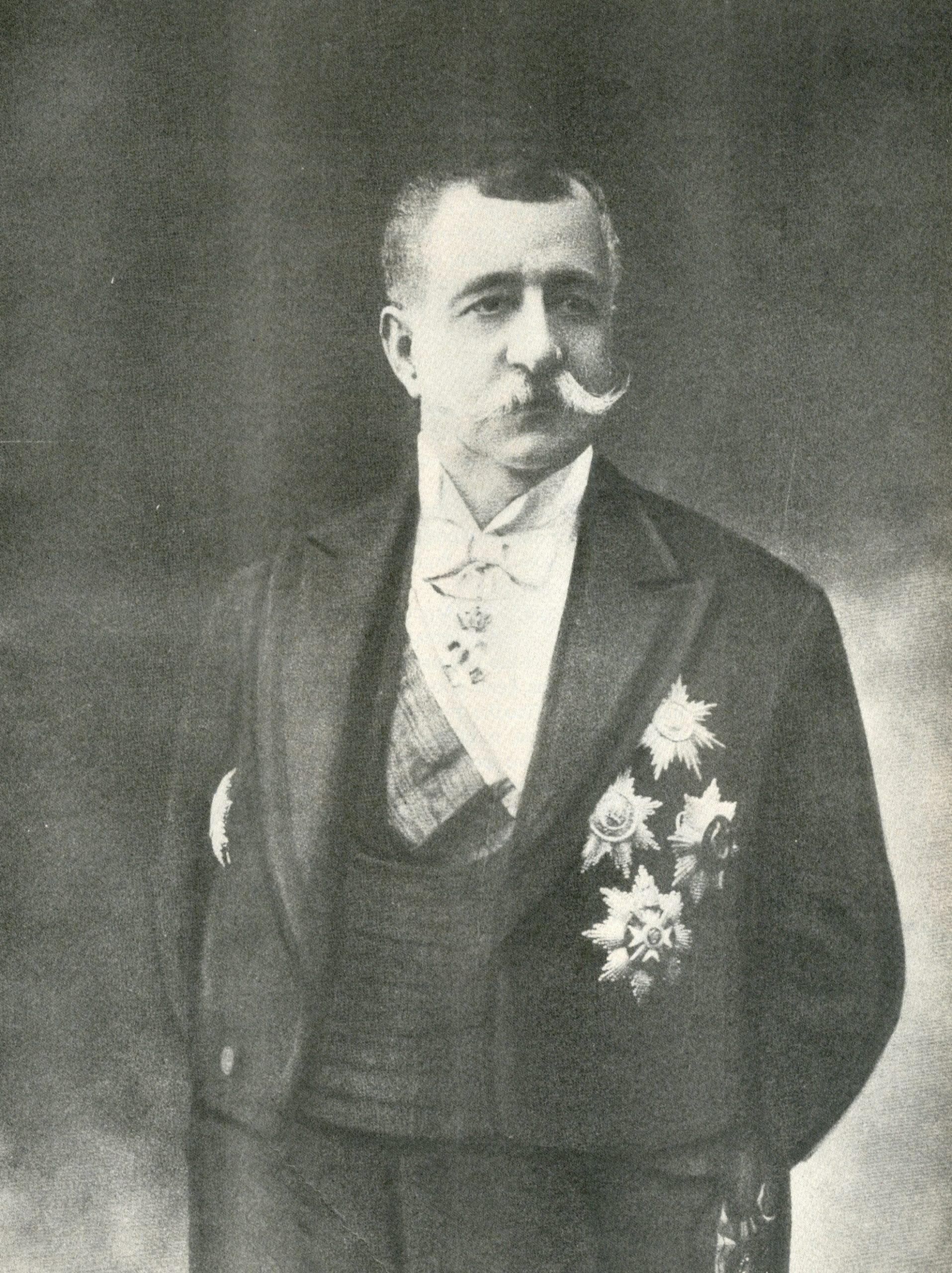 Ο τότε αρχηγός του Εθνικού κόμματος και μετέπειτα πρωθυπουργός Κυριακούλης Μαυρομιχάλης στα πόδια του οποίου πέφτει το φυσίγγιο δυναμίτιδας