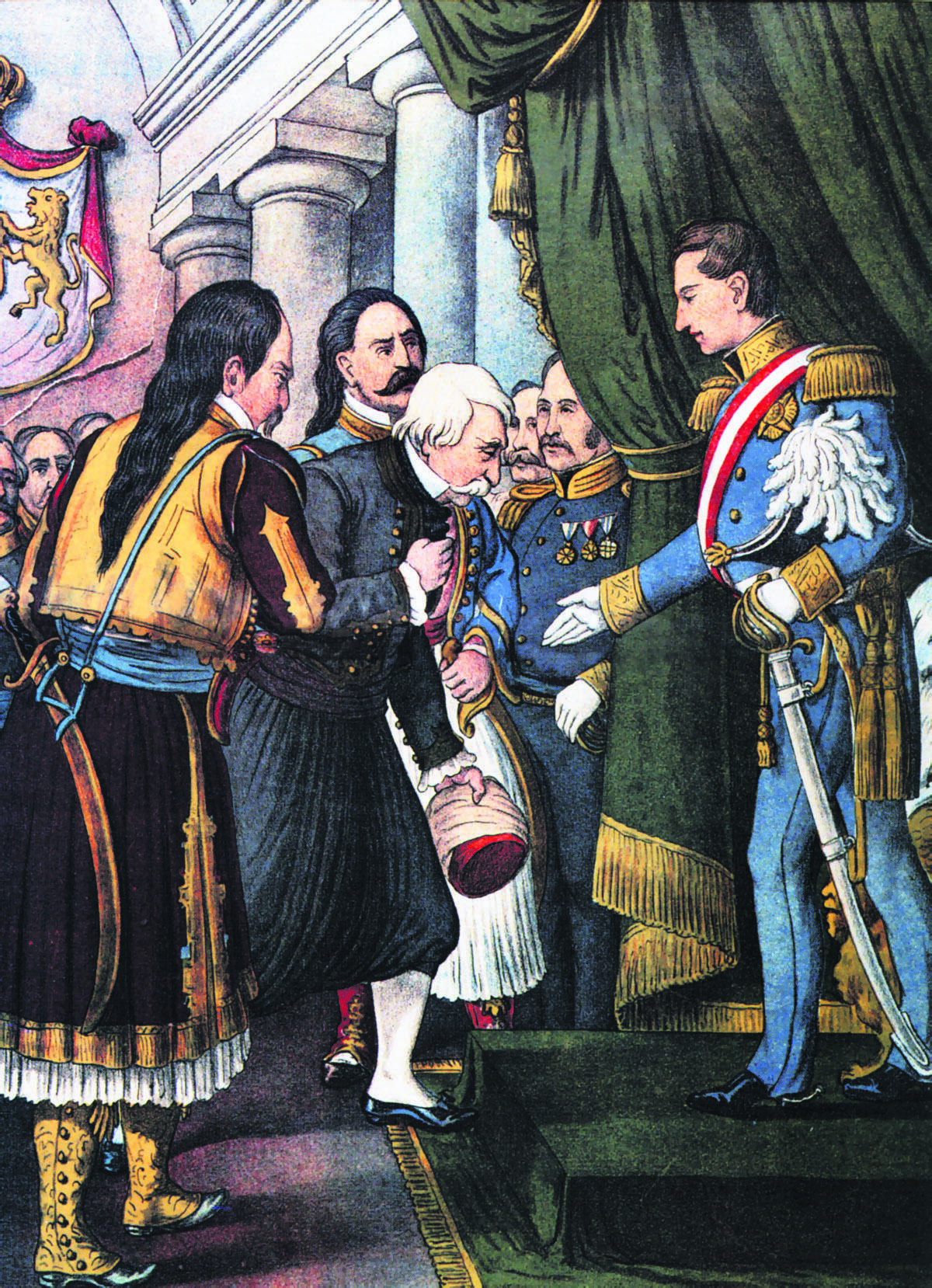 Η πρώτη ελληνοβαυαρική διαφωνία έρχεται για το… πρωτόκολλο συνάντησης των κυβερνητικών παραγόντων με τον Οθωνα πάνω στη φρεγάτα «Μαδαγασκάρη». Οι Ελληνες φορούν φέσια για να καλύψουν το κουρεμένο τους κεφάλι και χαιρετούν με το χέρι στην καρδιά σκύβοντας ελαφρά το κεφάλι, κάτι που αντιβαίνει στο βαυαρικό πρωτόκολλο. Οπως αναφέρει ο αντιβασιλέας Μάουερ, το φλέγον θέμα διευθετήθηκε με συνοπτικές διαδικασίες: «Φυσικά, επροτιμήθη ο ευρωπαϊκός τρόπος και ούτω το ζήτημα ελύθη άπαξ και διά παντός».