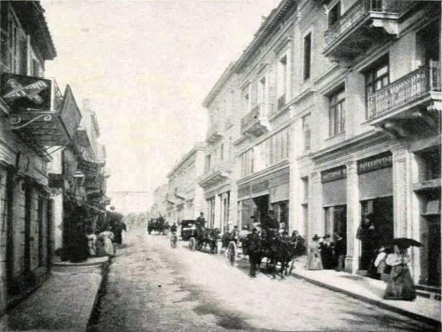 Το τελευταίο μισό του 19ου αιώνα εκεί κυριαρχούν κοσμηματοπωλεία και καπελάδικα. Στα πρώτα σημαντικότερα είναι εκείνα των αδελφών Μαραγκού, τα αδαμαντοπωλεία των Πομώνη, Τσιτσόπουλου και Σαμίου τα οποία «καθωρίζουσι, λαμπρύνουσι και φωταγωγούση την οδόν Ερμού». Δημοφιλέστερα καπελάδικα είναι των Παπασπυρόπουλου (με γυναικεία και ψάθινα καπέλα με παραγγελίες από το εξωτερικό) Ευσταθιάδη (παρασκευάζει, βάφει και ταριχεύει τα φτερά των γυναικείων καπέλων), αδελφών Παπαγιάννη (εκτός από λουλούδια και τεχνητά άνθη φτιάχνει στα τρία του εργοστάσια και στολισμό καπέλων), Οικονόμου και Βονάνου.