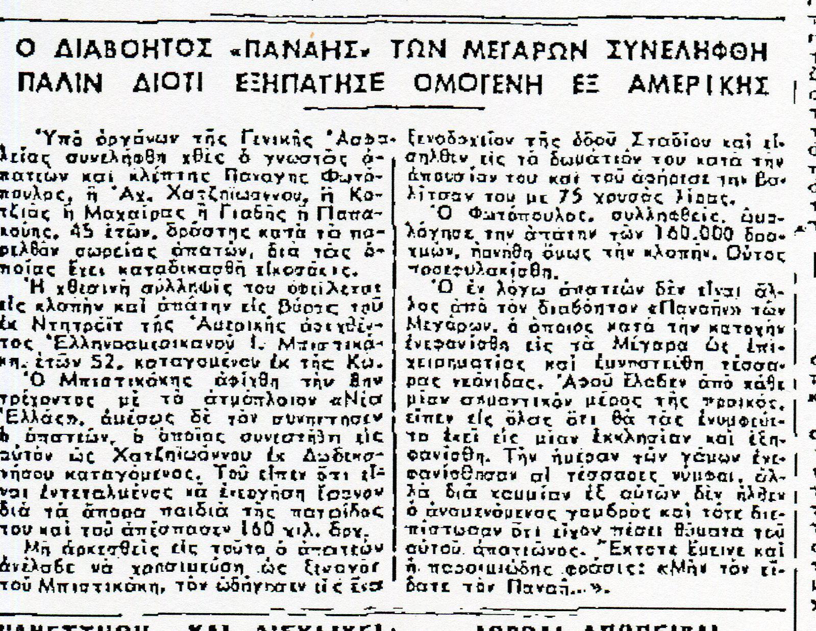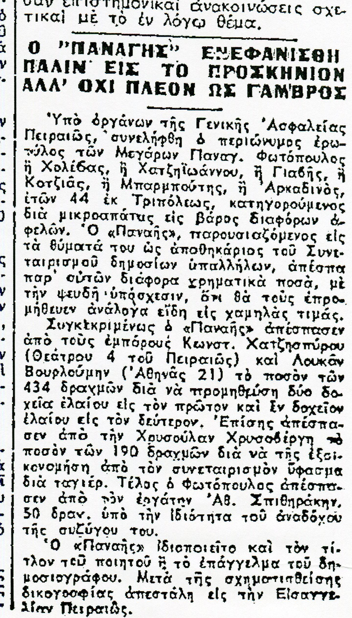 Ο Παναγής θα παρέμενε στην κατηγορία των απλών μικροαπατεώνων, αν στη διάρκεια της Κατοχής δεν έκανε την κορυφαία του κομπίνα.