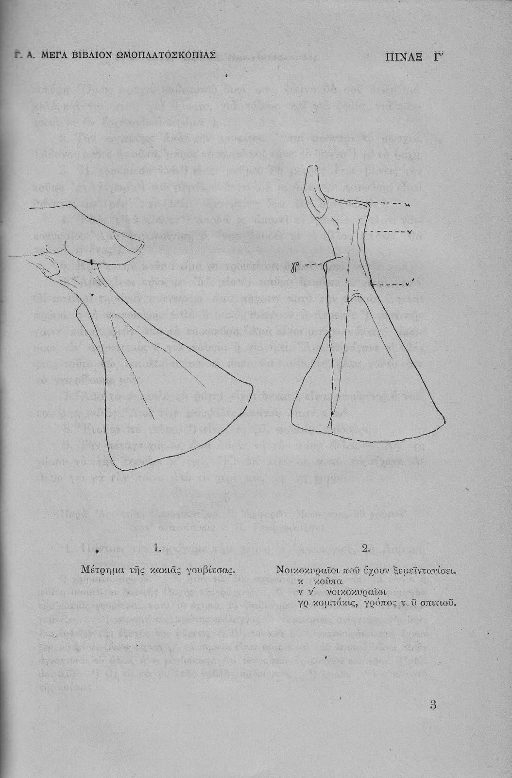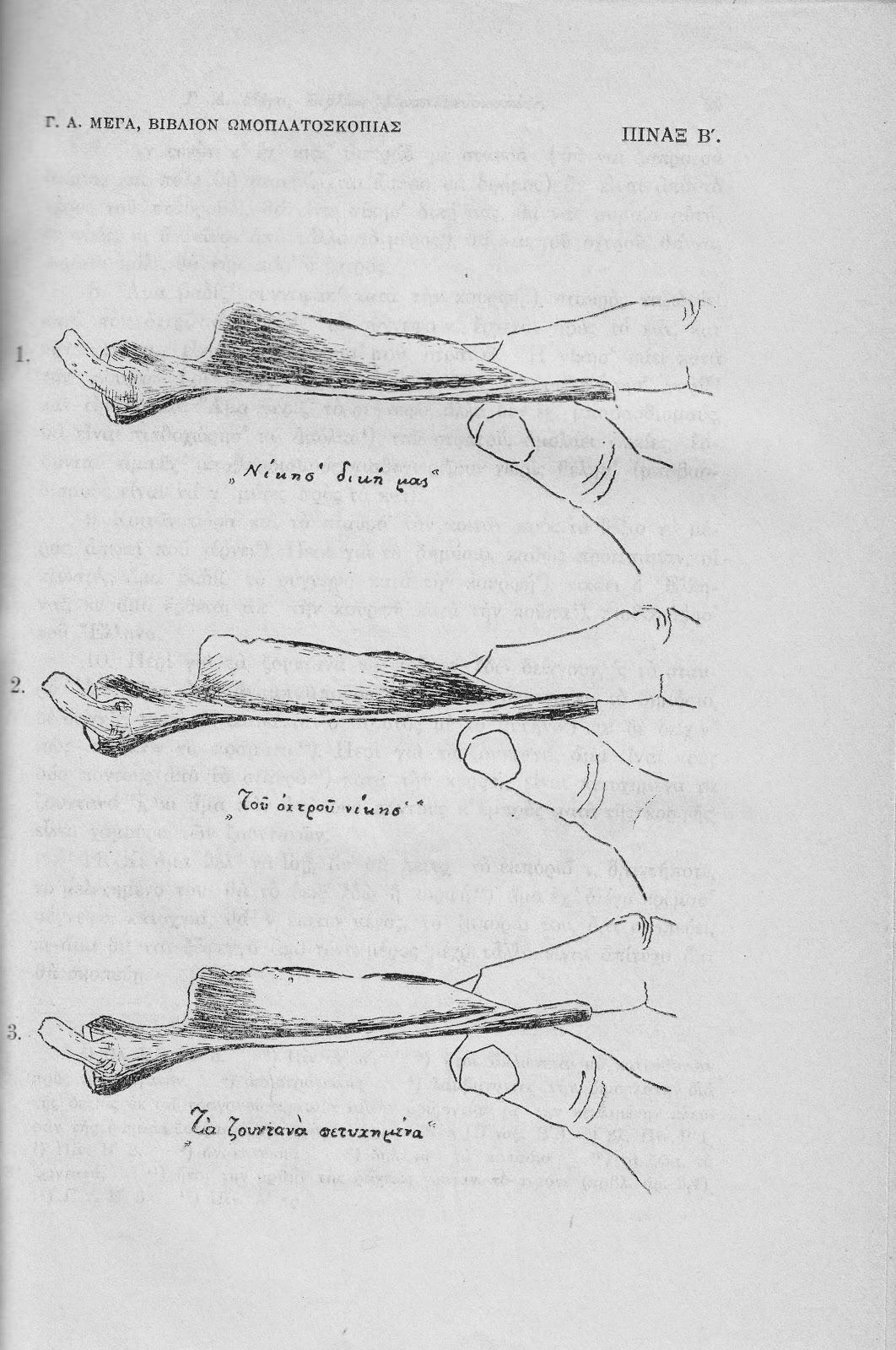Άλλοι «διαβάζουν» τις γραμμές που υπάρχουν κατά μήκος της πλάτης του ζώου. Η βαθουλωτή γραμμή επάνω στην πλάτη, προς το χοντρό μέρος είναι κακό σημάδι, η σκιά είναι αρρώστια, ενώ το δυναμωμένο νεύρο της «δείχνει» οικονομική ευμάρεια του σπιτιού. Κάποιοι υποστηρίζουν ότι για να «δείξει» η πλάτη του αρνιού καθαρά τα σημάδια ώστε να μπορούν να τα ερμηνεύσουν στη συνέχεια, πρέπει το αρνί να έχει κοιμηθεί τουλάχιστον δύο νύχτες στην αυλή του σπιτιού. Την ωμοπλατοσκοπία ως μέσο πρόβλεψης της έκβασης των μαχών χρησιμοποιούν και αρκετοί αγωνιστές του 1821, όπως ο Θεόδωρος Κολοκοτρώνης που αναφέρει στα απομνημονεύματά του για προσωπικές και εθνικές προβλέψεις.