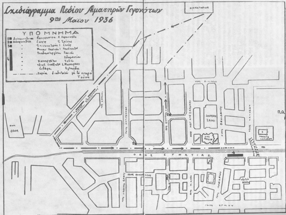 Είναι τέτοια η μανία των ανδρών της χωροφυλακής, που χρειάζεται να τους συγκρατήσουν τα στρατιωτικά τμήματα για να αποφευχθεί μεγαλύτερη σφαγή. Ακόμα κι έτσι όμως, στους δρόμους της πόλης βρίσκονται 12 νεκροί, 32 βαριά τραυματίες και 250 ελαφρά, χωρίς μέσα σε αυτούς να υπάρχει ούτε ένας χωροφύλακας. Τα ονόματα των νεκρών είναι: Β. Σταύρου, Ίντο Σεννόρ, Ι. Πανόπουλος, Δ. Αγλαμίδης, Αναστάσιος Τούσης, Σαλβαντόρ Ματαράσο, Δημήτρης Λαιλάνης, Αναστασία Καρανικόλα, Σ. Διαμαντόπουλος, Ιωάννης Πιτάρης, Ευθύμης Μάνος και Εμμανουήλ Ζαχαρίου.
