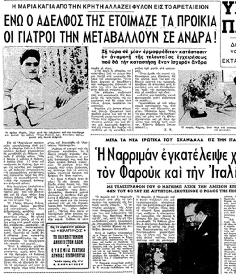 Η Μαρία μεγαλώνει σε χωριό της Κρήτης αλλά, όσο απίστευτο κι αν ακούγεται, η μαμή υποτιμά τα υποτυπώδη ανδρικά γεννητικά όργανα του νεογέννητου και το ονομάζει κορίτσι. Γονείς και περιβάλλον του παιδιού παραβλέποντας την εμφανή διαφορετικότητά του, το μεγαλώνουν ως κορίτσι αλλά η εφηβεία αποκαλύπτει τη πραγματικότητα. Ενώ ο αδελφός της ετοιμάζει προξενιά για να την αποκαταστήσει, η Μαρία μπαίνει στο Αρεταίειο και μετά από σειρά επεμβάσεων ονομάζεται πλέον Μάριος και μεταφέρεται από τη γυναικεία πτέρυγα στην ανδρική…