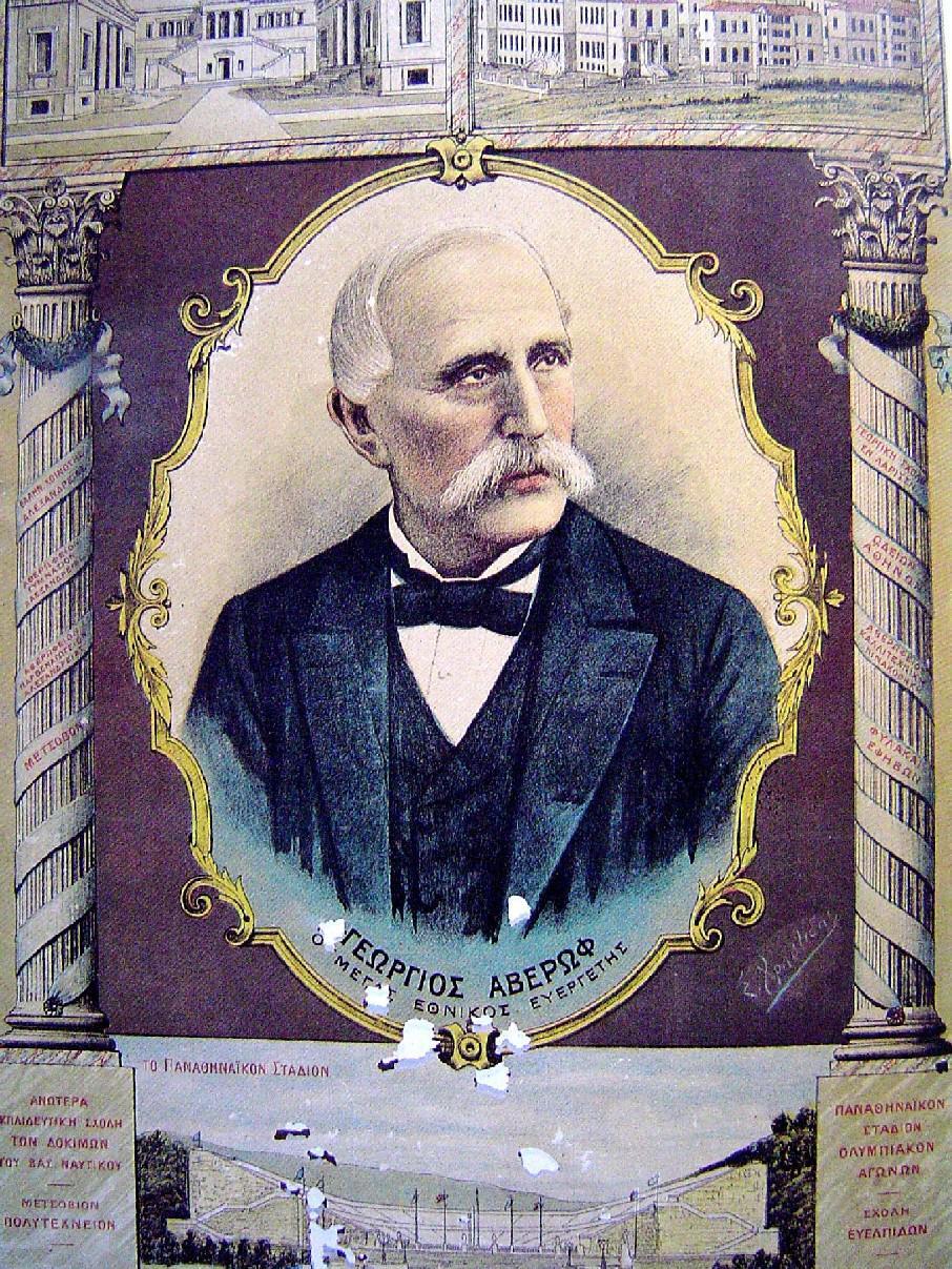 Σε αυτόν προστρέχει το ελληνικό κράτος μετά την ανάθεση στη χώρα μας των πρώτων Ολυμπιακών Αγώνων της νεώτερης ιστορίας. Το 1895 ταξιδεύει στην Αίγυπτο ο γραμματέας της Επιτροπής διοργάνωσης Τιμολέων Φιλήμων ώστε να τον πείσει να συνεισφέρει οικονομικά στην αναμαρμάρωση του αρχαίου Παναθηναϊκού Σταδίου. Ο Αβέρωφ όχι μόνο πείθεται να…πληρώσει το μάρμαρο (έκφραση που παραμένει μέχρι σήμερα για όποιον αναλαμβάνει να πληρώσει με προσωπικό κόστος τις συνέπειες μιας πράξης), αλλά καλύπτει άμεσα με 585.000 δρχ. ολόκληρη την αναμόρφωση του Παναθηναϊκού σταδίου, παίρνοντας ως μοναδικό «αντάλλαγμα» τον ανδριάντα του μπροστά στην είσοδό του. Είναι βέβαιο ότι χωρίς τη γενναιοδωρία του Γεωργίου Αβέρωφ δεν θα ήταν καθόλου δεδομένη ούτε η επιτυχής επανεκκίνηση των Ολυμπιακών Αγώνων, ούτε φυσικά η συνέχισή τους.