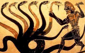 Λερναία Ύδρα: Καρπός του έρωτα του Τυφώνα και της Έχιδνας, ήταν γιγάντιο υδρόβιο ερπετό με εννέα κεφάλια, το οποίο ζούσε στους βάλτους της Λέρνας. Ο Ηρακλής στα πλαίσια των δώδεκα άθλων εστάλη να το εξοντώσει, αλλά για κάθε κεφάλι που έκοβε φύτρωναν δύο στην θέση του. Έτσι με την βοήθεια του Ιόλαου μετά από κάθε αποκεφαλισμό καυτηρίαζε την πληγή, ώστε να αποφεύγεται η αναγέννηση των κεφαλών. Κατά την διάρκεια του άθλου εξόντωσε επίσης και ένα καβούρι το οποίο προκειμένου να βοηθήσει την Λερναία Ύδρα, κατά την διάρκεια της μάχης του δάγκωνε την φτέρνα. Τόσο ο δράκων όσο και το καβούρι τοποθετήθηκαν από την Ήρα στους αστερισμούς δημιουργώντας την Ύδρα και τον Καρκίνο.