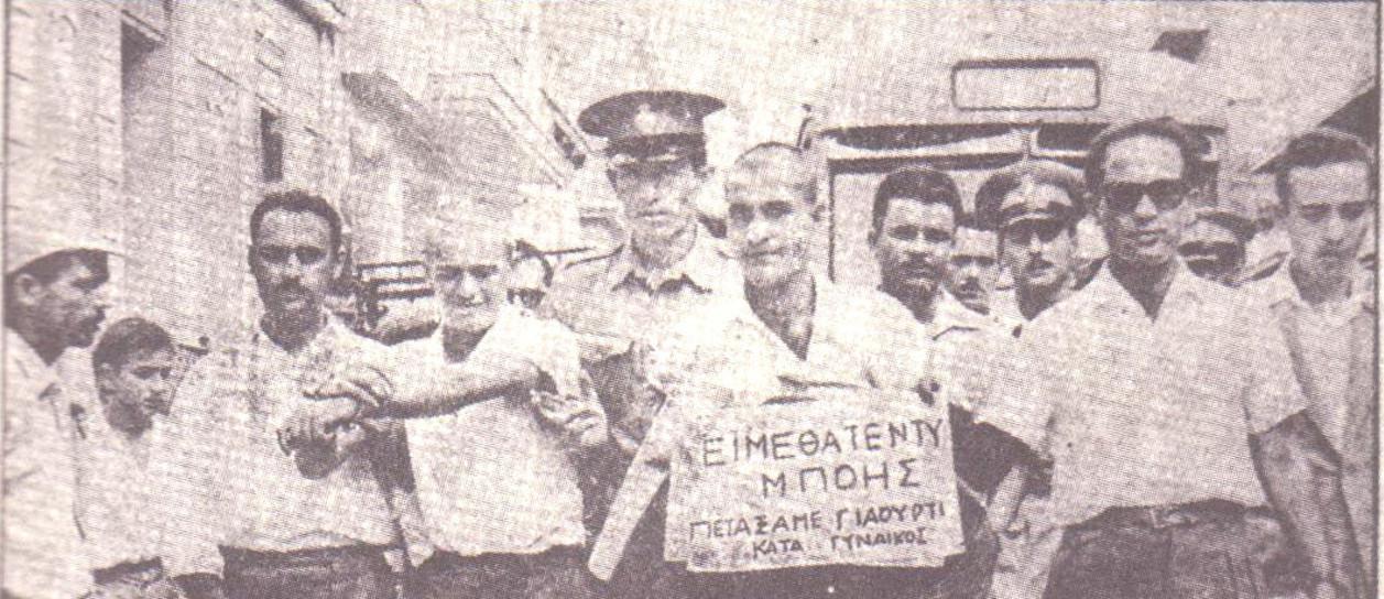 Οι άτακτοι νεαροί συνελήφθησαν και στο αστυνομικό τμήμα της Κυψέλης τους κούρεψαν με την… ψιλή, τους ψαλίδισαν τα ρεβέρ των παντελονιών τους και ξεκίνησε η δημόσια διαπόμπευσή τους. Μια μικρή πομπή ξεκίνησε από την Κυψέλη, ενώ στο λαιμό του ενός από τους δύο νεαρούς είχε κρεμαστεί η πινακίδα «Είμεθα τέντυ μπόης. Πετάξαμε γιαούρτι κατά γυναικός».