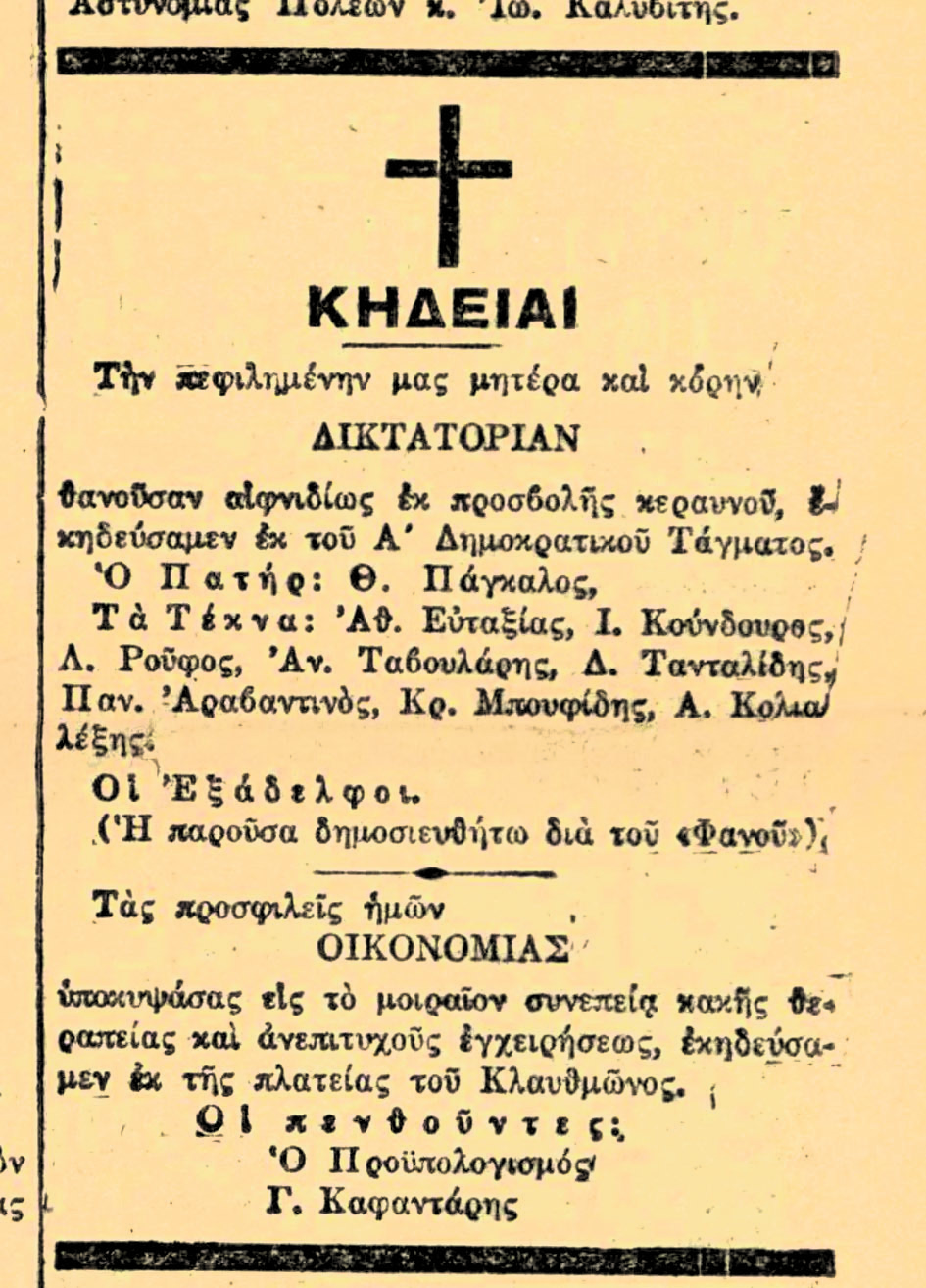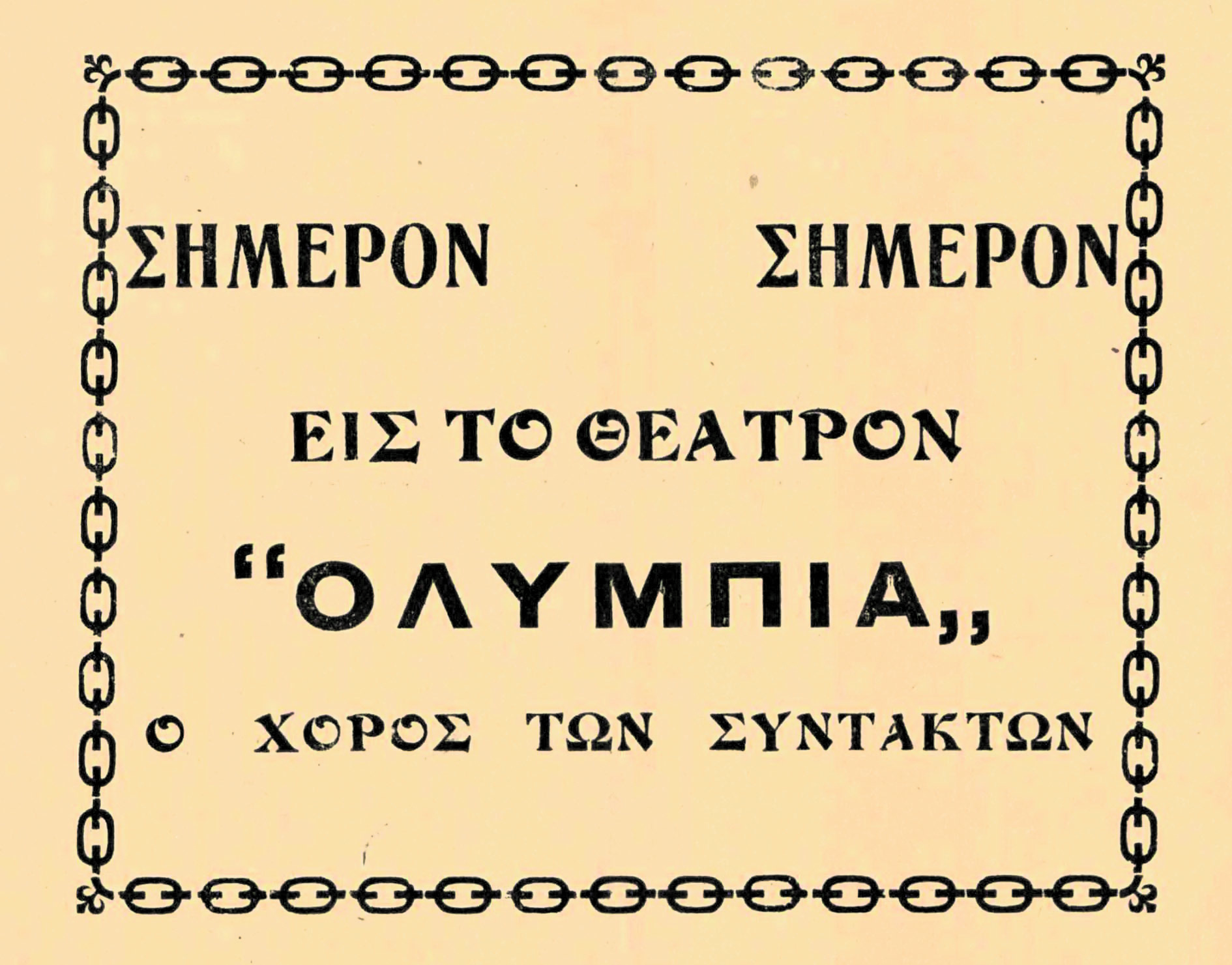 Ετσι, την Αποκριά του 1942 ανεβαίνει στο Θέατρο Κοτοπούλη-Ρεξ η μνημειώδης παράσταση «Ο Φανός των Συντακτών». Το κοινό προμηθεύεται τα εισιτήρια σε ένα μόλις πρωινό, γεμίζει ασφυκτικά το θέατρο και γιορτάζει την Αποκριά βλέποντας μια ξεχωριστή παράσταση διάρκειας σχεδόν τεσσερισήμισι ωρών, χειροκροτώντας συγκινημένο κάθε φορά που το κείμενο περιέχει συγκεκαλυμμένες αναφορές στην ελευθερία. Η επιτυχία της παράστασης, κάτω από την μπότα των κατακτητών, είναι τέτοια, που στην επανάληψή της το 1943 συμμετέχουν σύσσωμα τα κορυφαία ονόματα της θεατρικής και της λυρικής σκηνής, μπαλέτα, χορωδίες, καθώς και ορχήστρα 45 καθηγητών Ωδείων.