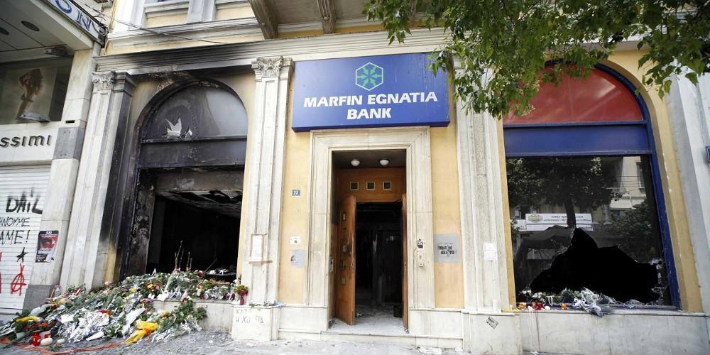 Όλα ξεκίνησαν όταν, σύμφωνα με το βούλευμα του Συμβουλίου Πλημμελειοδικών, 23 άτομα με καλυμμένα χαρακτηριστικά αφού έσπασαν το τζάμι στη Marfin Bank, πέταξαν μολότοφ με αποτέλεσμα το κτίριο να τυλιχθεί στις φλόγες. Μέσα στο υποκατάστημα υπήρχαν οχτώ εργαζόμενοι πέντε εκ των οποίων κατάφεραν να διαφύγουν μέσα από τους καπνούς.