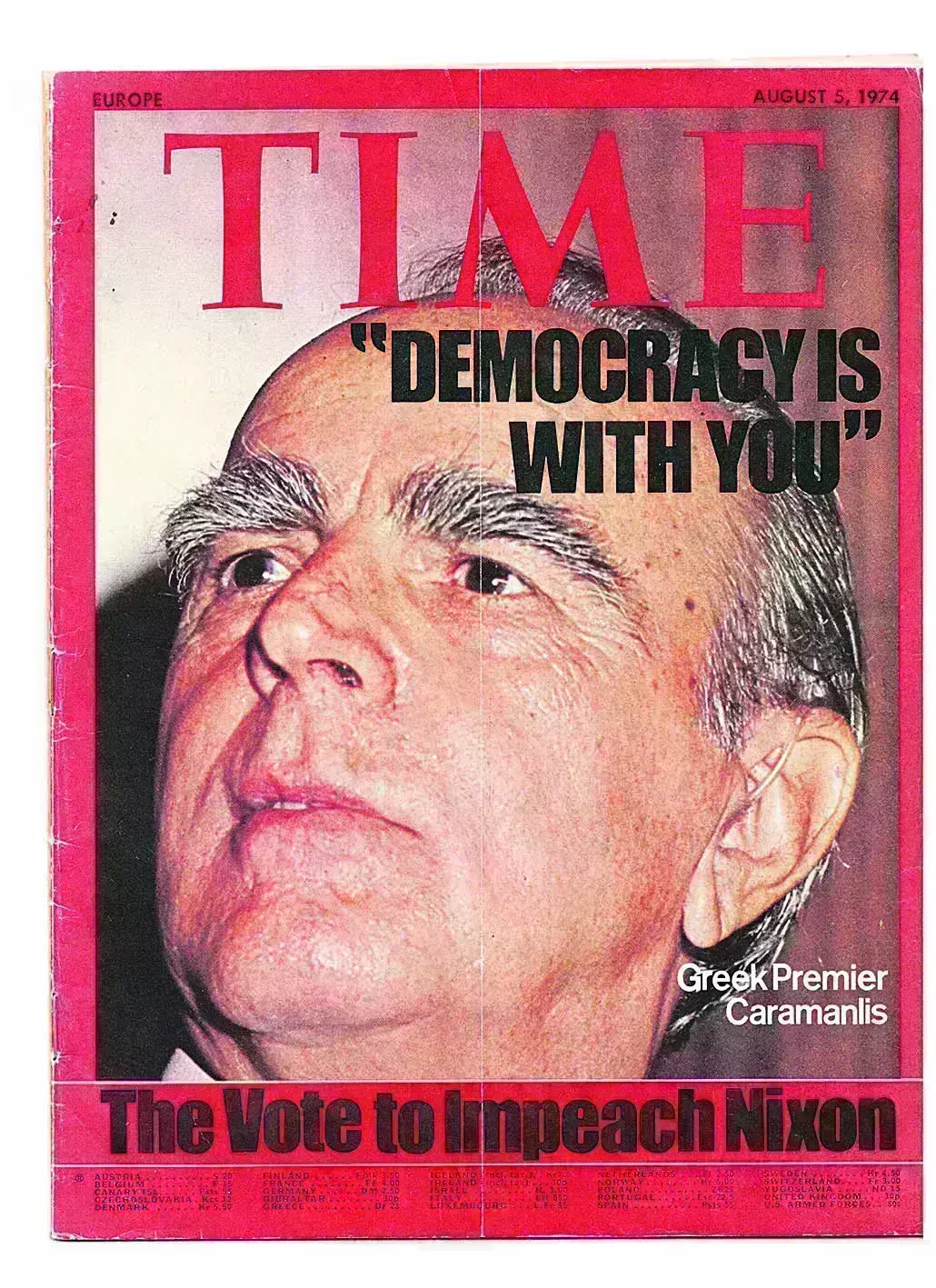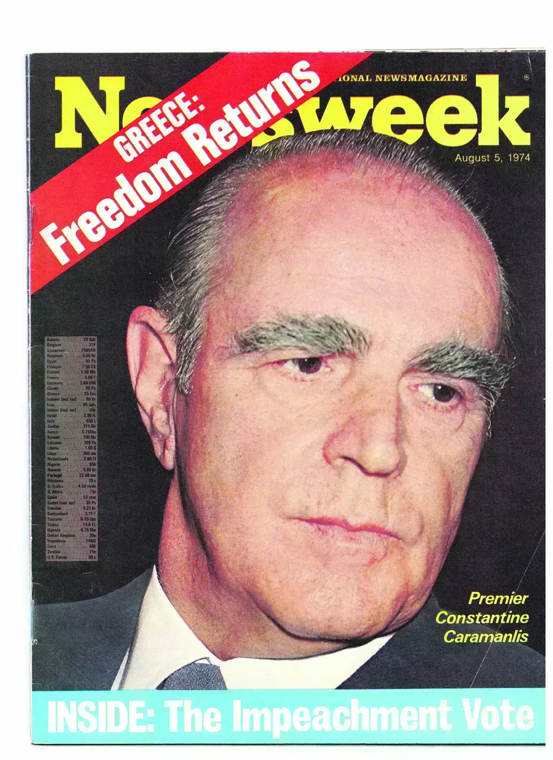 Μεταξύ των ντοκουμέντων που αποκαλύπτουμε σήμερα είναι και ένα φυλλάδιο που είχε φτιάξει η Νέα Δημοκρατία στην επέτειο των δύο χρόνων από την αποκατάσταση της Δημοκρατίας στη χώρα μας, όταν πρωθυπουργός και πρόεδρος της Ν.Δ. ήταν ο Κωνσταντίνος Καραμανλής, αλλά και φωτογραφίες και πρωτοσέλιδα μεγάλων ξένων περιοδικών, που είχαν κάνει πρωτοσέλιδο την επιστροφή του Καραμανλή και την επιστροφή της Δημοκρατίας στη χώρα μας, ύστερα από επταετή δικτατορία.