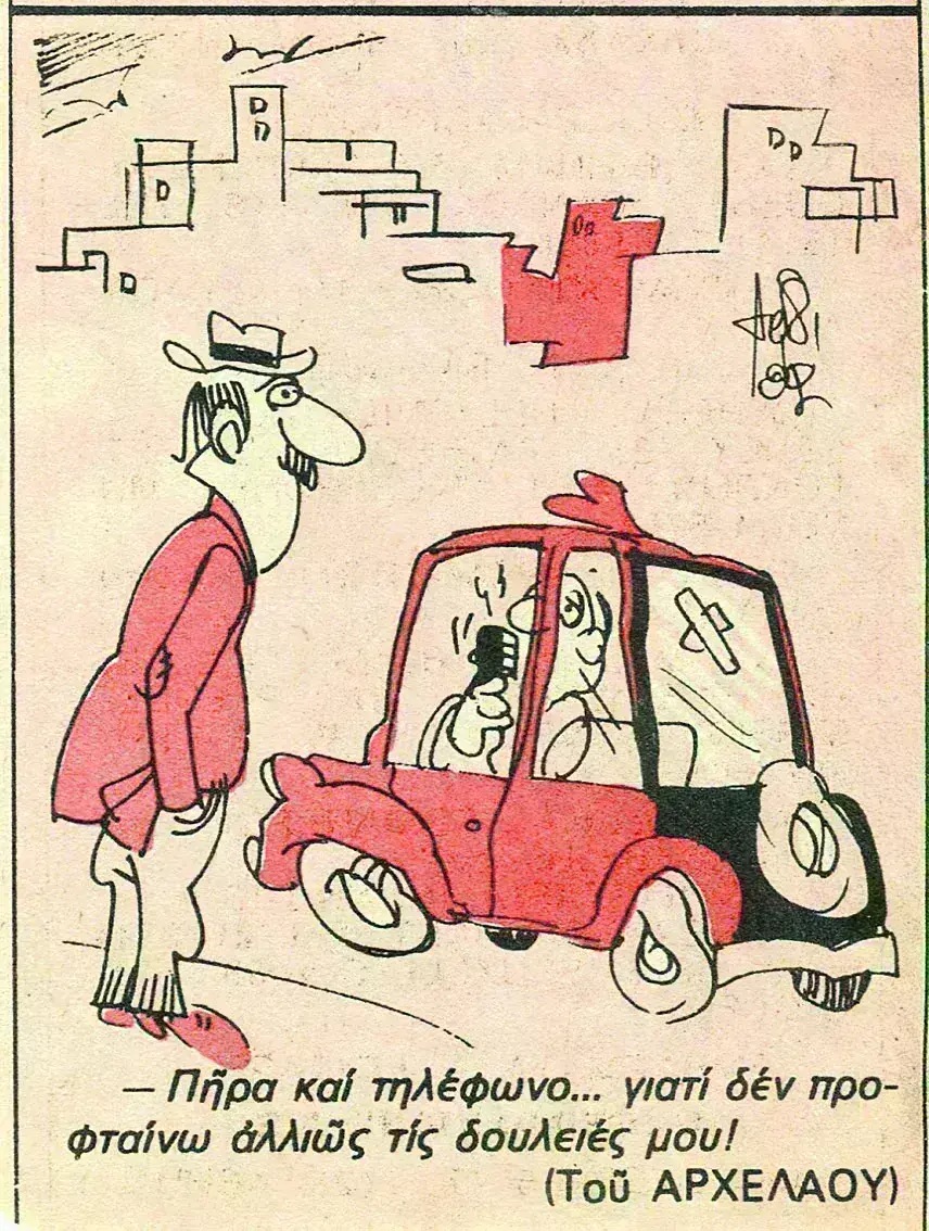 Παράλληλα, επειδή το κόστος εγκατάστασης παραμένει ακόμα πολύ υψηλό, η πολιτεία κάνει άνοιγμα στον πολύ κόσμο τοποθετώντας τηλεφωνικούς θαλάμους που μέσα σ’ ελάχιστο διάστημα κατακλύζουν την επικράτεια. Πλέον κάθε περιοχή και κάθε γειτονιά έχει άμεση πρόσβαση στην πληροφορία, την είδηση και το κουτσομπολιό. Ετσι, προμηθεύεσαι το κέρμα από το κοντινότερο μπακάλικο ή περίπτερο και μετά οπλίζεσαι με υπομονή για την αναμονή στην ουρά -αφού πάντα υπάρχει κάποιος ή κάποια που φλυαρεί-, με αποτέλεσμα καβγάδες από τους πιο νευρικούς ή βιαστικούς.