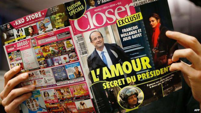 Τον Ιανουάριο του 2014 η γαλλική έκδοση του σκανδαλοθηρικού περιοδικού Closer αποκάλυψε την κρυφή σχέση του Φρανσουά Ολλάντ με την Γαλλίδα ηθοποιό Ζιλύ Γκαγιέ προκαλώντας σάλο σε όλο τον κόσμο. Ο παπαράτσι Σεμπαστιάν Βαλιελάδήλωσε στο RTL ότι παρακολουθούσε ανενόχλητος σχεδόν έναν χρόνο τον Ολάντ. Στον Τύπο κυκλοφόρησαν εξευτελιστικές γελοιογραφίες ενώ στο διαδίκτυο έκανε θραύση ένα παιχνίδι που απεικονίζει τον Ολάντ καβάλα σε ένα σκούτερ, να προσπαθεί να αποφύγει κινητά εμπόδια, όπως μία φιγούρα της Τριερβελέρ που τον κυνηγά ή διάφορους παπαράτσι.