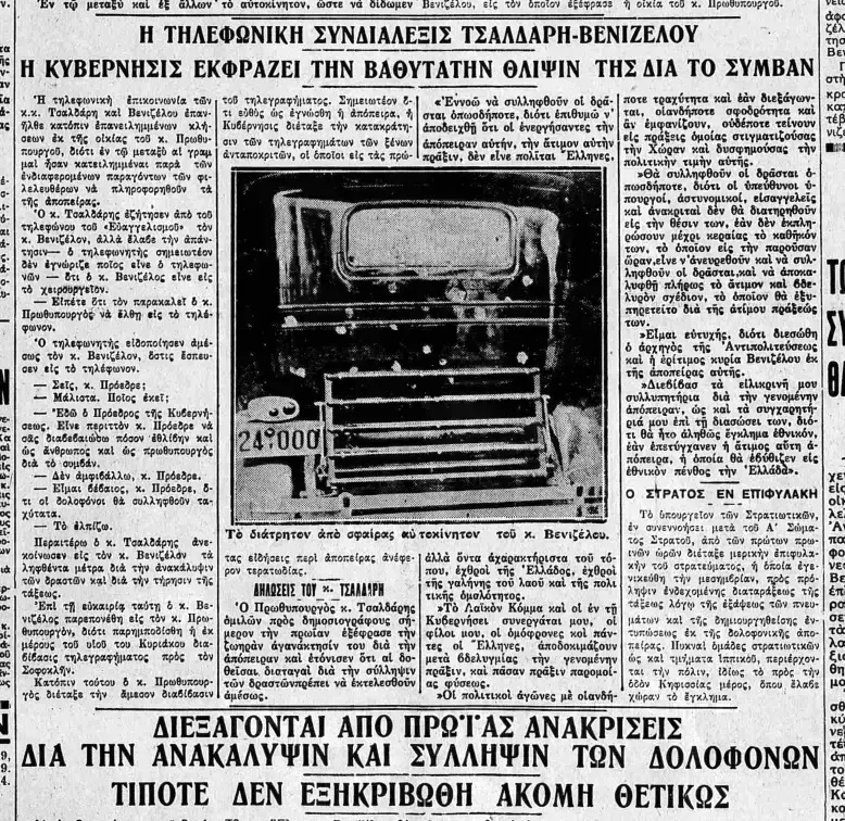 Μόνο ο Ελευθέριος Βενιζέλος ζει δύο αντίστοιχες εμπειρίες. Η δεύτερη, με την οποία θ’ ασχοληθούμε σήμερα, θυμίζει περισσότερο σκηνή από τον “Νονό” ή αμερικανική ταινία καταδίωξης με αναφορά στην περίοδο της ποτοαπαγόρευσης. Συνέβη όμως στην Ελλάδα.