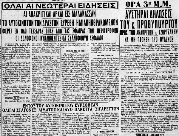 Παρ’ όλα αυτά τα πολιτικά πάθη παραμένουν τεταμένα, και ενδεικτικό αυτού είναι το κύριο άρθρο της εφημερίδας “Ελληνική”, συμφερόντων Ιωάννη Μεταξά, στις 8 Ιουνίου που “δείχνει” ξεκάθαρα την πλευρά των ενόχων και ποιοι επιζητούν και περιμένουν να επωφεληθούν από την πόλωση :“Τους ήρωας της οδού Κηφισιάς, αυτών των οποίων τα ονόματα θα τιμήση η εθνική ιστορία με χρυσά γράμματα, ας τους μιμηθώμεν όλοι, αφού τα ύψιστα συμφέροντα της πατρίδας αυτό απαιτούν. Εις τας απειλάς του βενιζελισμού πρέπει ο αντιβενιζελισμός να απαντήση με έργα της αγριωτέρας σκληρότητος, εάν δεν θέλη να ατιμασθή και να εξευτελισθή… Γίγαντες του αντιβενιζελικού λαού, εγερθήτε και ορμήσατε! Εις την ορμήν σας δε ας μη υπάρξη ούτε οίκτος ούτε έλεος διά την συντριβήν και τον αφανισμόν των αντιπάλων σας…”.
