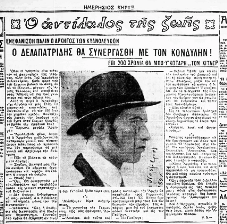Το 1934 ο Δελαπατρίδης δίνει συνέντευξη στην εφημερίδα «Ημερήσιος Κήρυξ» στην οποία αναδεικνύεται η διαταραγμένη ψυχική του ισορροπία. Παράλληλα, όμως, διαψεύδονται οι φήμες της εποχής που τον χαρακτηρίζουν φιλοναζιστή, αφού δηλώνει αντίπαλος του Χίτλερ και αντίθετος στους διωγμούς των Εβραίων.