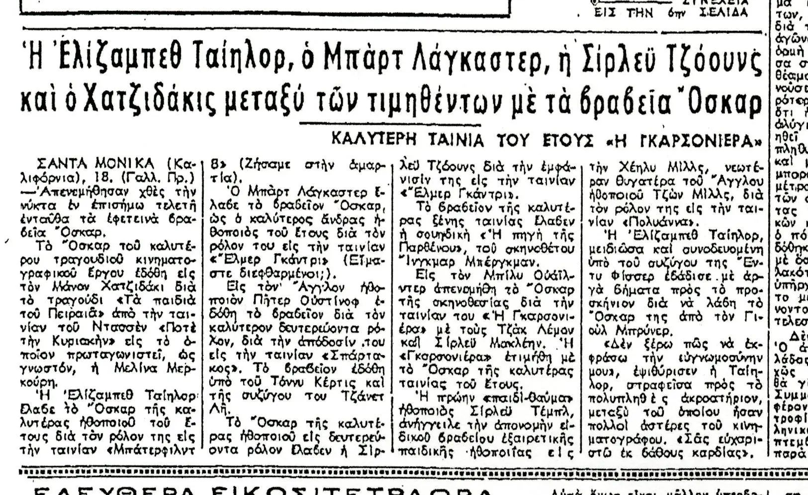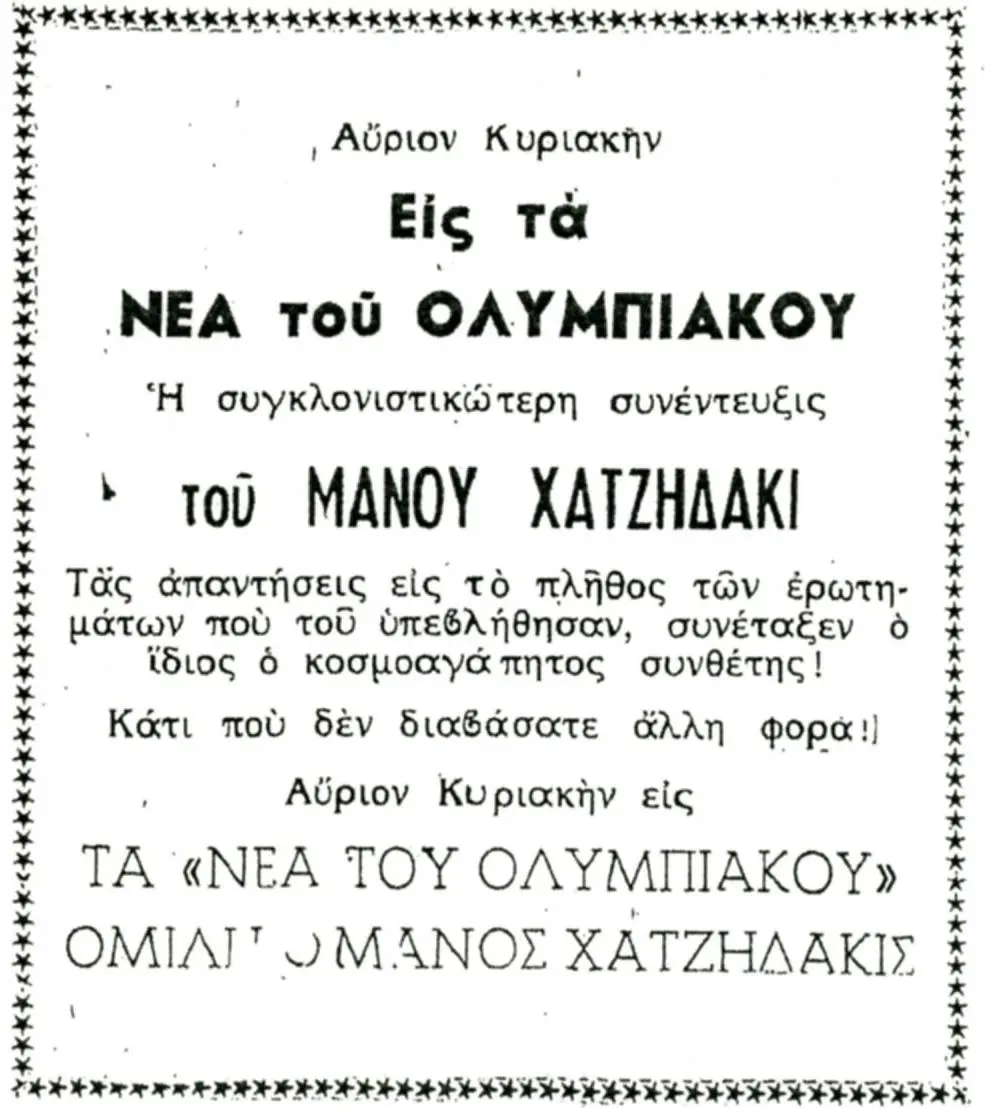 Φυσικά, η πραγματικότητα είναι ότι αυτό ανακοινώθηκε δύο ημέρες πριν, στις 17 Απριλίου, αλλά η διαφορά ώρας με τις ΗΠΑ και η καθυστέρηση στην εκτύπωση των εφημερίδων καθυστέρησαν αρκετά τη δημοσίευση της είδησης. Είμαστε βέβαιοι ότι, αν ζούσε σήμερα ο κορυφαίος μας μουσουργός, όχι μόνο θα αδιαφορούσε γι’ αυτή την επέτειο, αλλά θα έδειχνε δυσαρέσκεια και στην υπενθύμιση της βράβευσης. Στην πράξη όμως, η απονομή του Όσκαρ αποτελεί το δικό μας «άλλοθι», ώστε να θυμηθούμε μία από τις σημαντικότερες προσωπικότητες του 20ού αιώνα για τη χώρα μας.