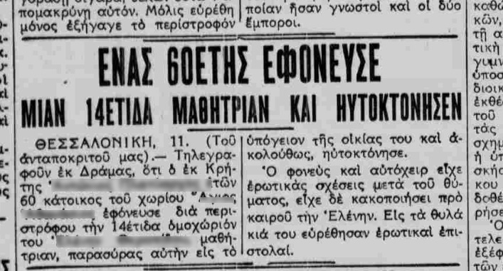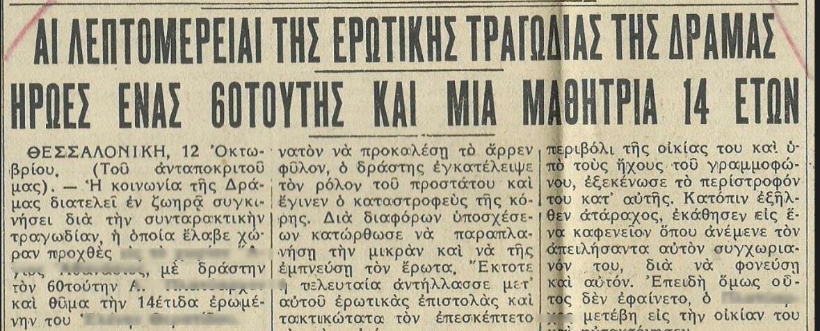 Τα ρεπορτάζ της εποχής μάλιστα κάνουν και … ψυχανάλυση της παράλογης “σχέσης” :“Η χήρα όμως είχε την κόρην νεαράν μαθητριούλαν της οποίας η εύσωμος καλλονή και η πρόωρος ανάπτυξις φαίνεται ότι ευθύς εξ αρχής είχαν εμπνεύσει πονηράς σκέψεις εις τον γέροντα, ο οποίος εν τέλη την ερωτεύθει με πάθος σφοδρότατον. Ήτο μόλις δέκα τεσσάρων ετών. Εν τούτοις ήτο ωραία και θελκτική η Ελενίτσα. Αλλά αρκετή είναι και η ηλικία αυτή κατά τον Φρόιντ, δια να προκαλέσει τον άρρενα, δια να γοητευθεί η ίδια και να παραπλανηθεί”.