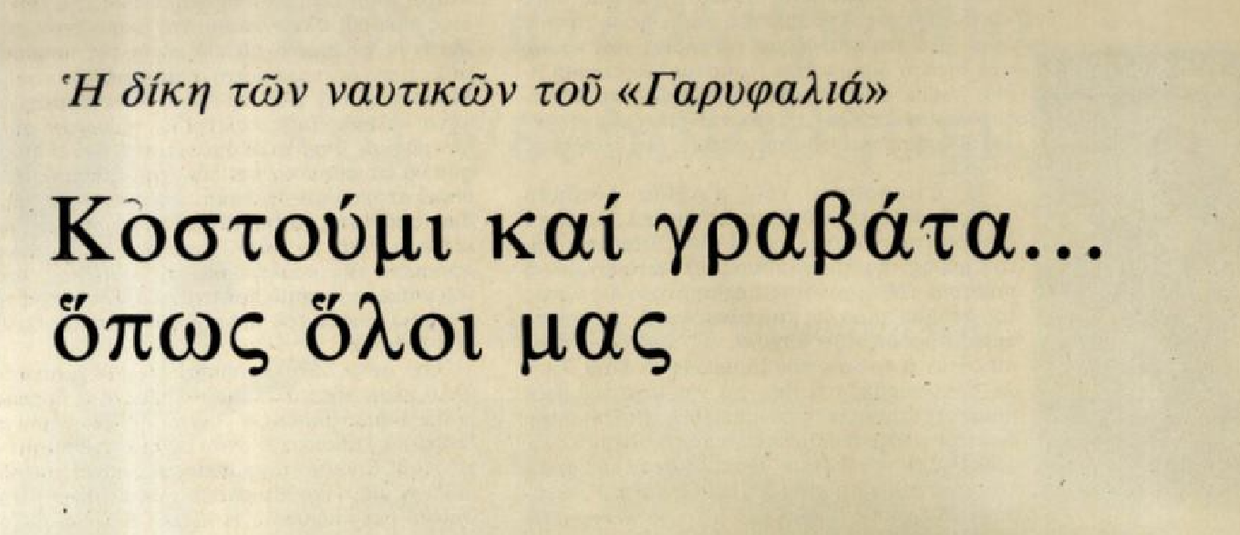 Τρεις μήνες μετά, εξελίσσεται ένα φρικτότερο σκηνικό πάλι σε ελληνικό πλοίο. Είναι 15 Μαρτίου 1984 όταν το φορτηγό πλοίο ελληνικών συμφερόντων “Γαριφαλιά” ταξιδεύει από την Μομπάσα της Κένυας για το Καράτσι του Πακιστάν, όταν το πλήρωμα εντοπίζει στα αμπάρια 11 Σουδανούς λαθρεπιβάτες, οι μισοί εκ των οποίων είναι ανήλικοι. Ο πλοίαρχος Αντώνης Π. αφού αρχικά κλείνει τους τελευταίους στην αποθήκη για δύο ημέρες χωρίς τροφή και νερό, εν συνεχεία διατάζει το πλήρωμα να τους πετάξει στη θάλασσα ανοιχτά της Σομαλίας σε σημείο που υπάρχουν καρχαρίες. Όταν το πλοίο επιστρέφει μετά από ένα μήνα στην Ελλάδα ο μάγειρας του “Γαριφαλιά” Ευτύχιος Ζωγραφάκης καταγγέλλει στο λιμεναρχείο Πάτρας το φρικτό γεγονός και η υπόθεση ακολουθεί την δικαστική οδό.